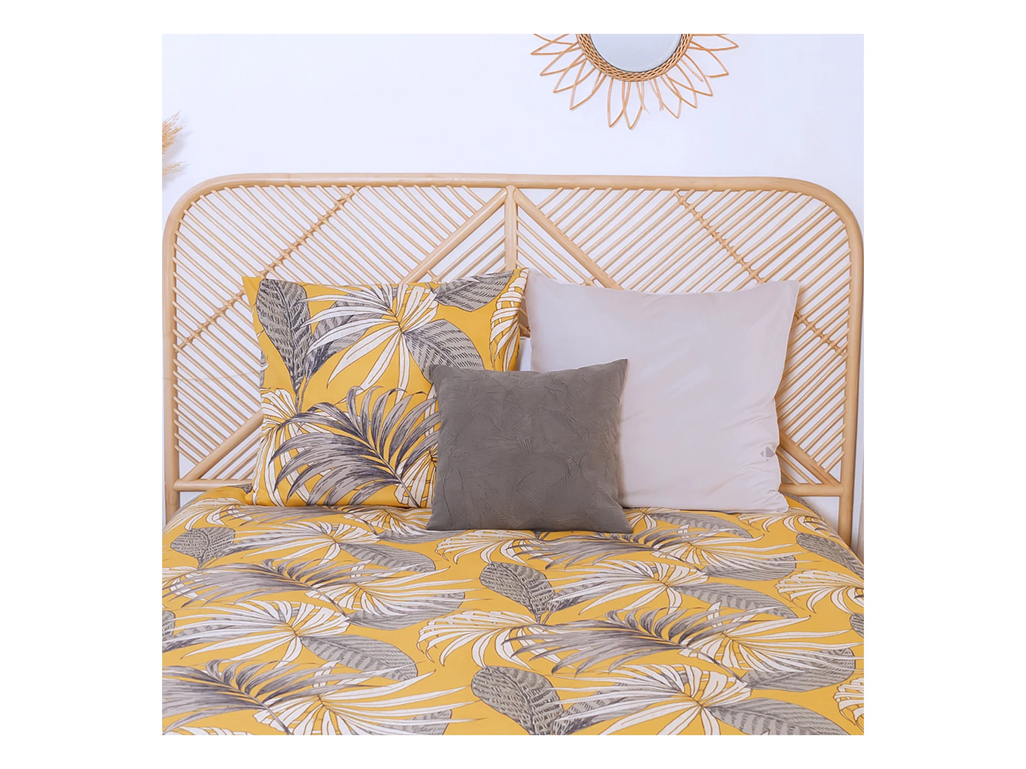 Parure de lit 240x220 cm Microfibre 50% recyclée AQUILIE Jaune 3 pièces