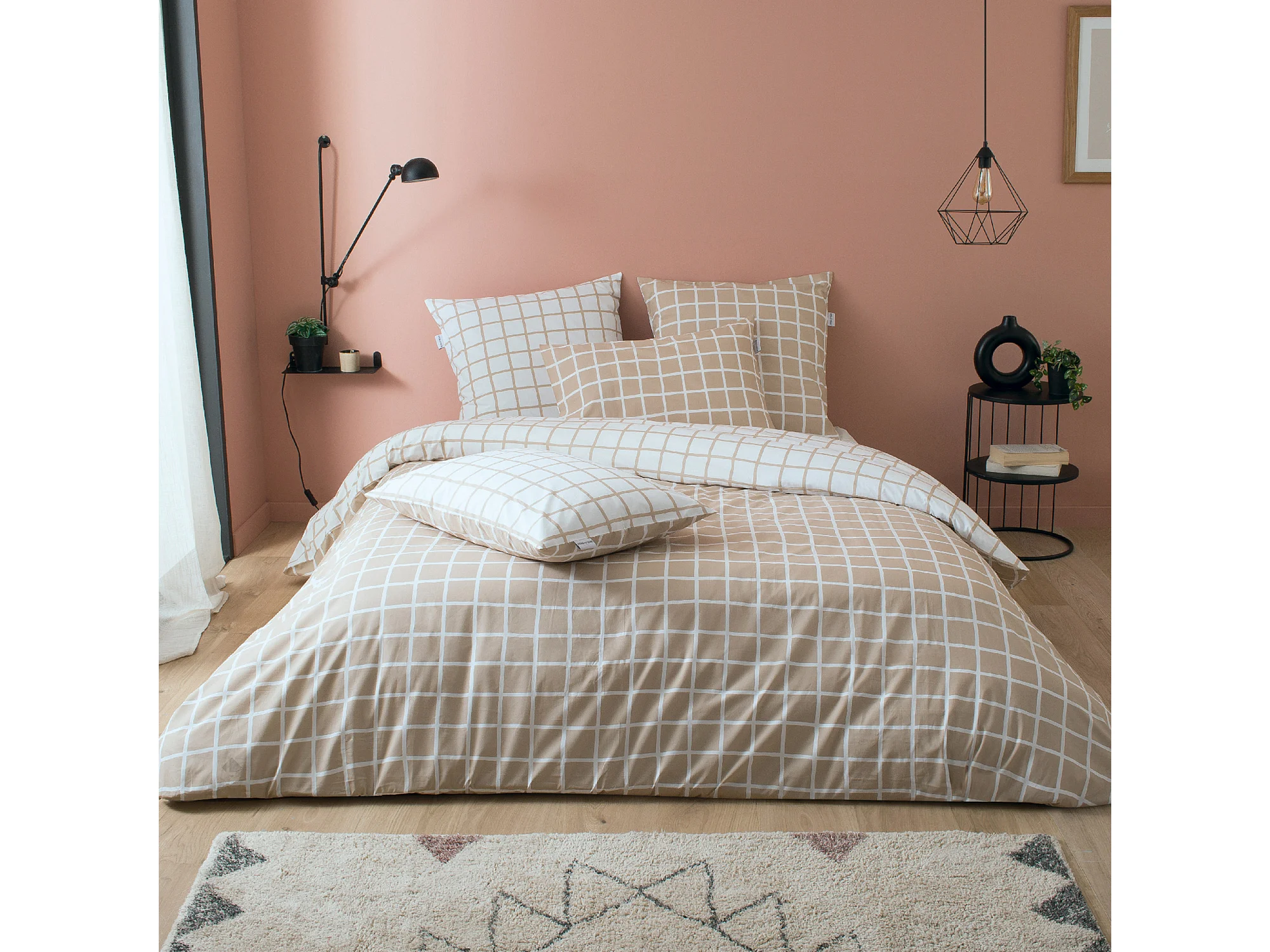 Parure de lit 240x220 cm percale coton DDM MAX Beige 3 pièces