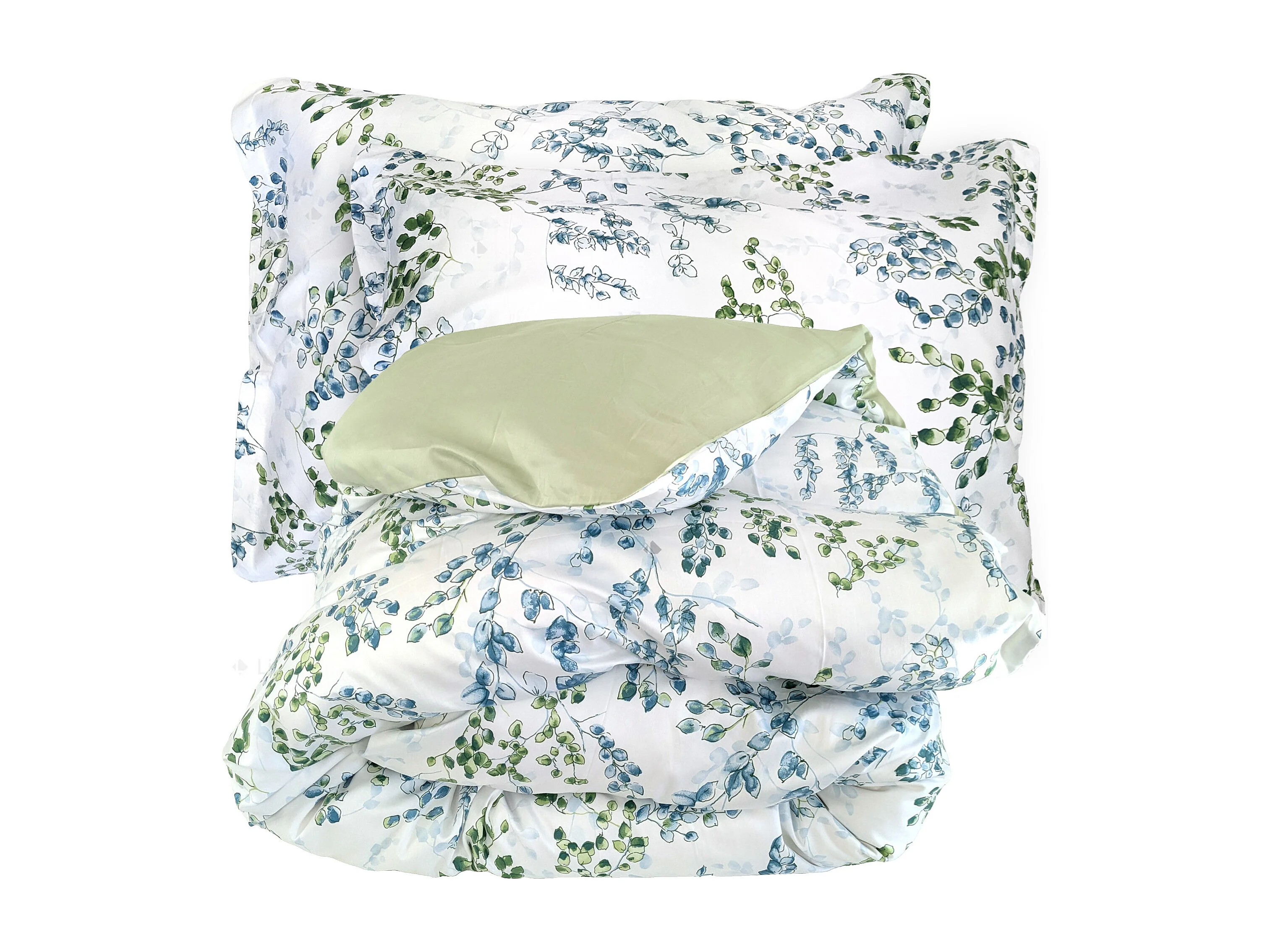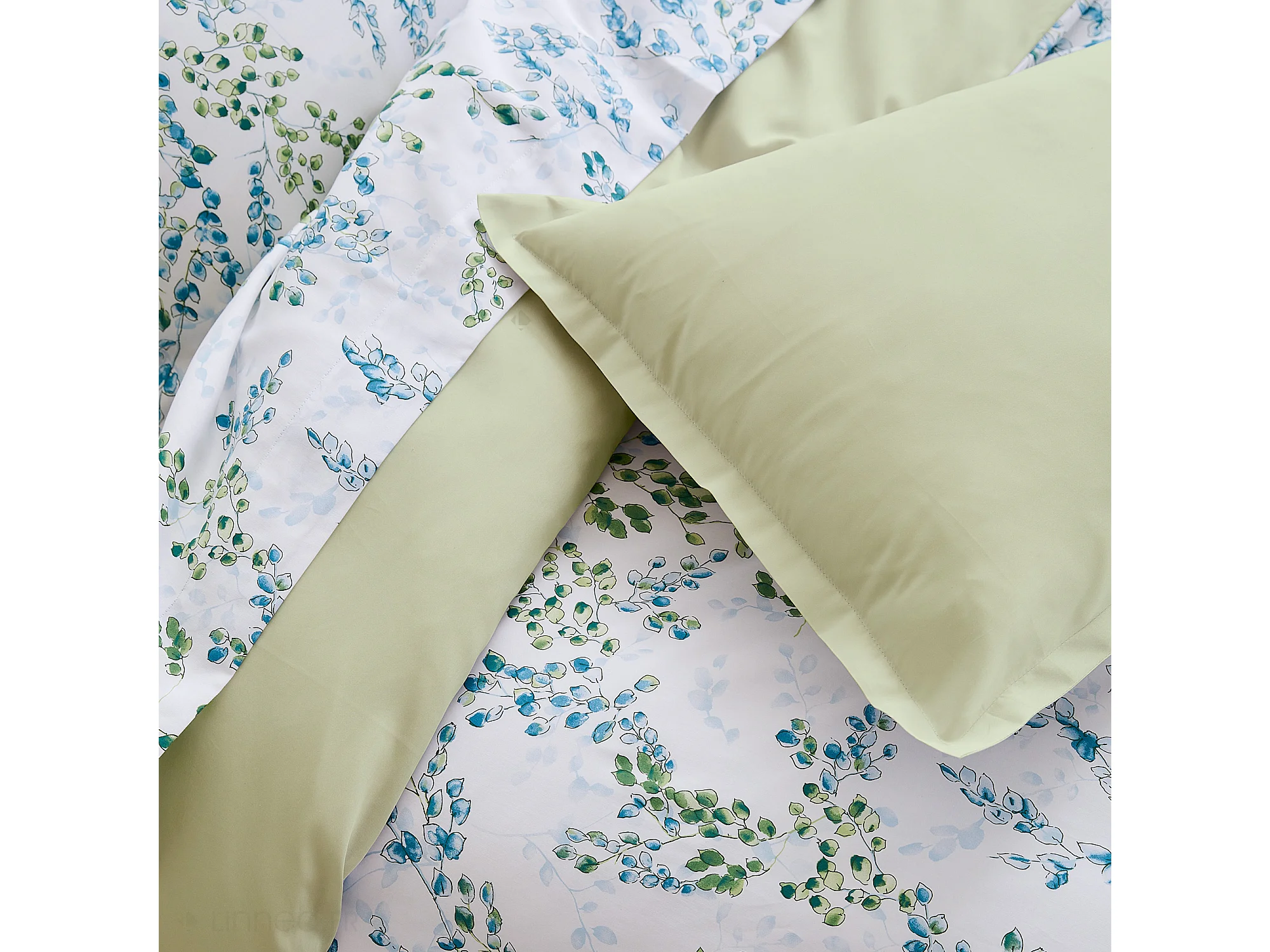 Parure de lit 240x220 cm satin de coton ANGÈLE vert tilleul 3 pièces taies 50x70 cm