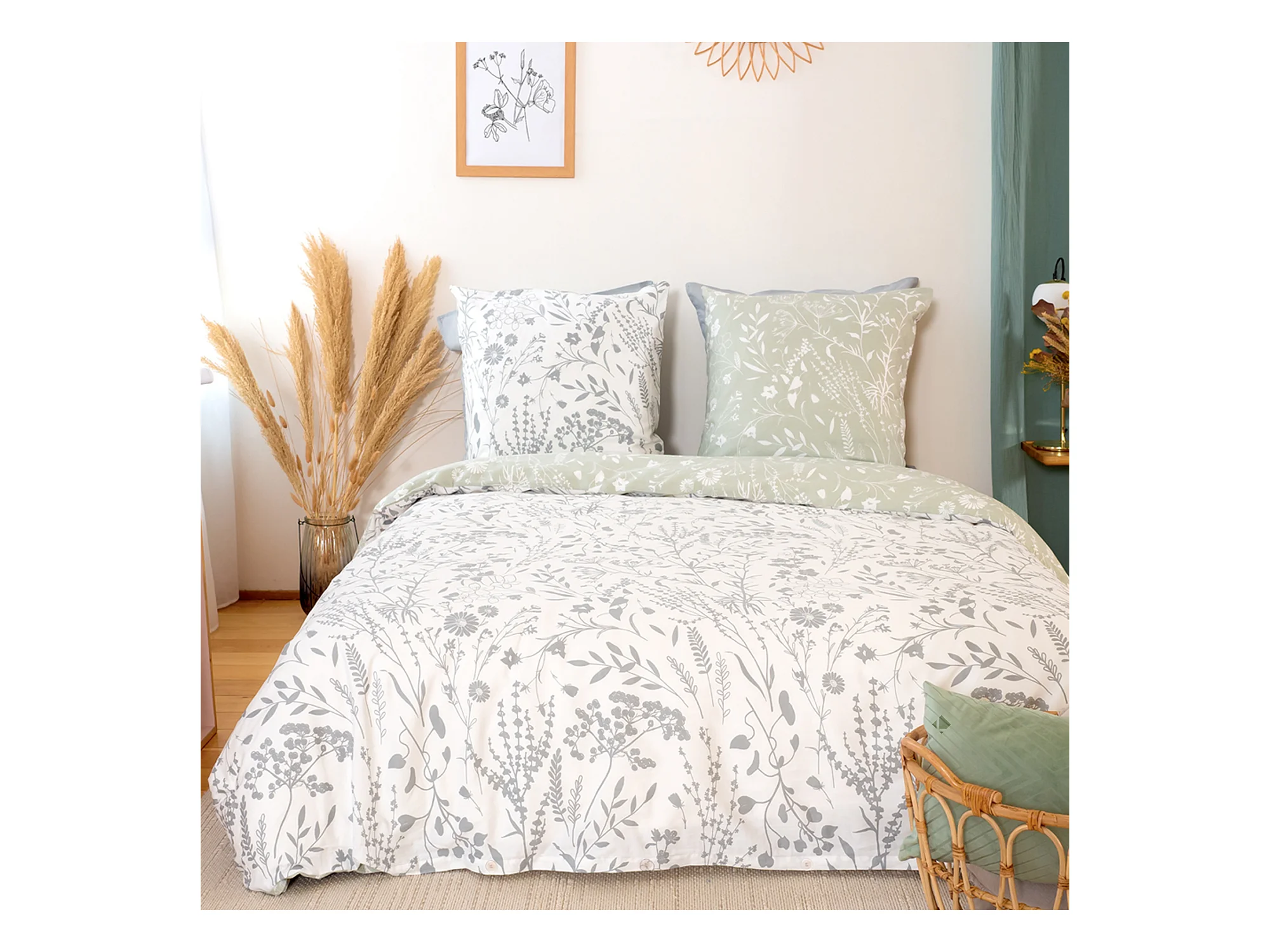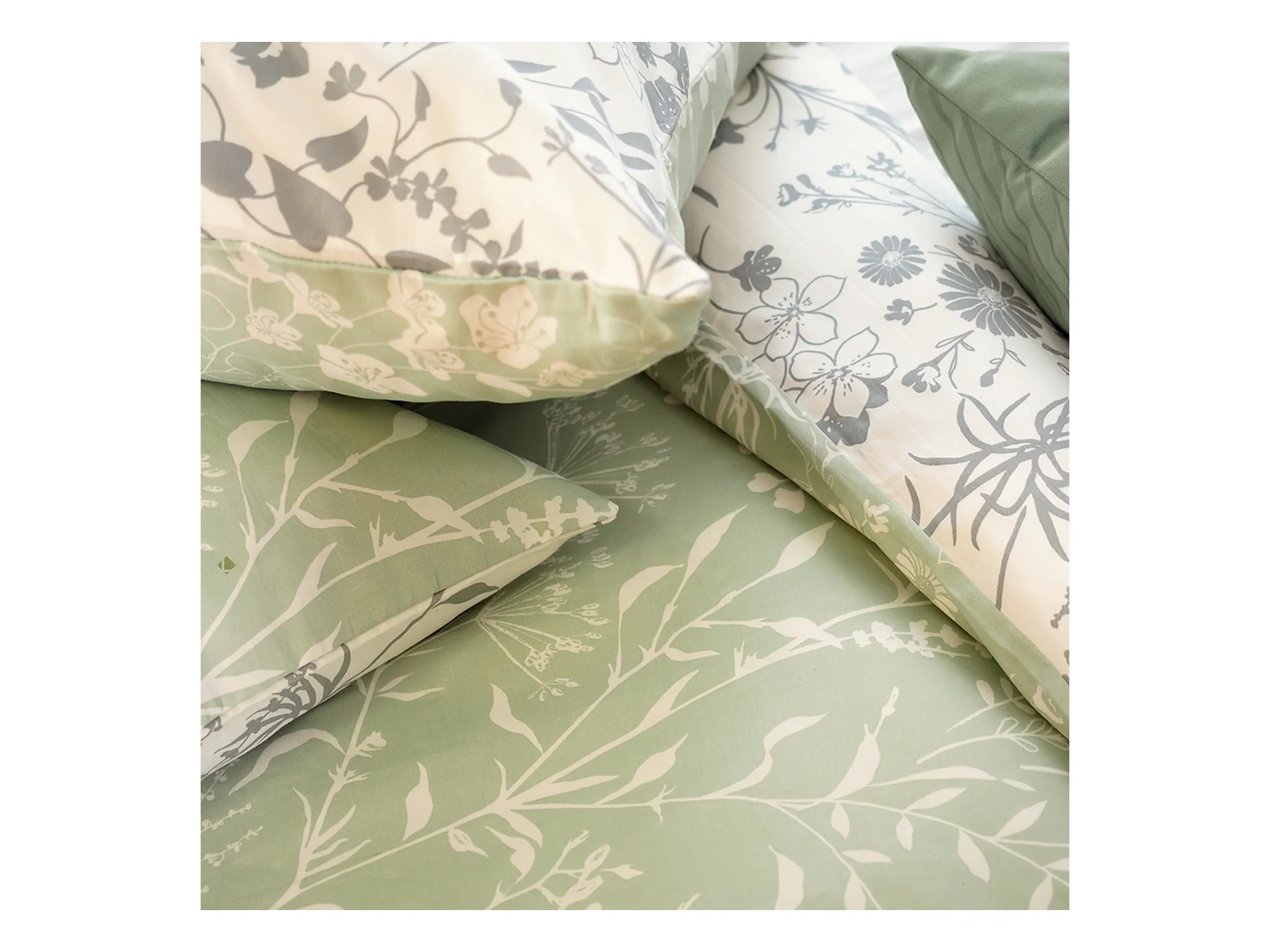 Parure de lit 240x220 cm Satin de coton SUSIE Vert 3 pièces