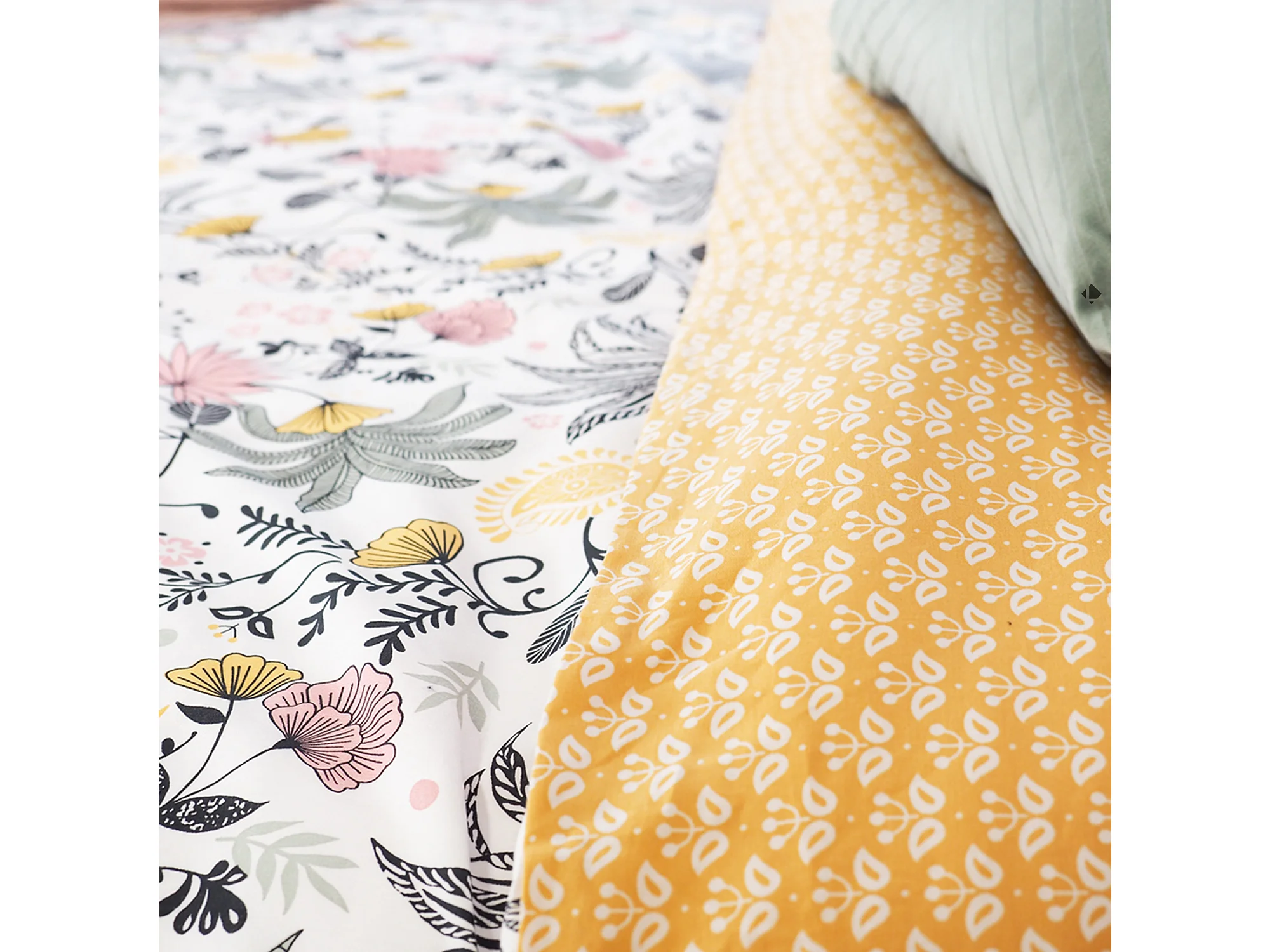 Housse de couette + taie(s) oreiller "Tivory vert" 100% coton imprimé.
