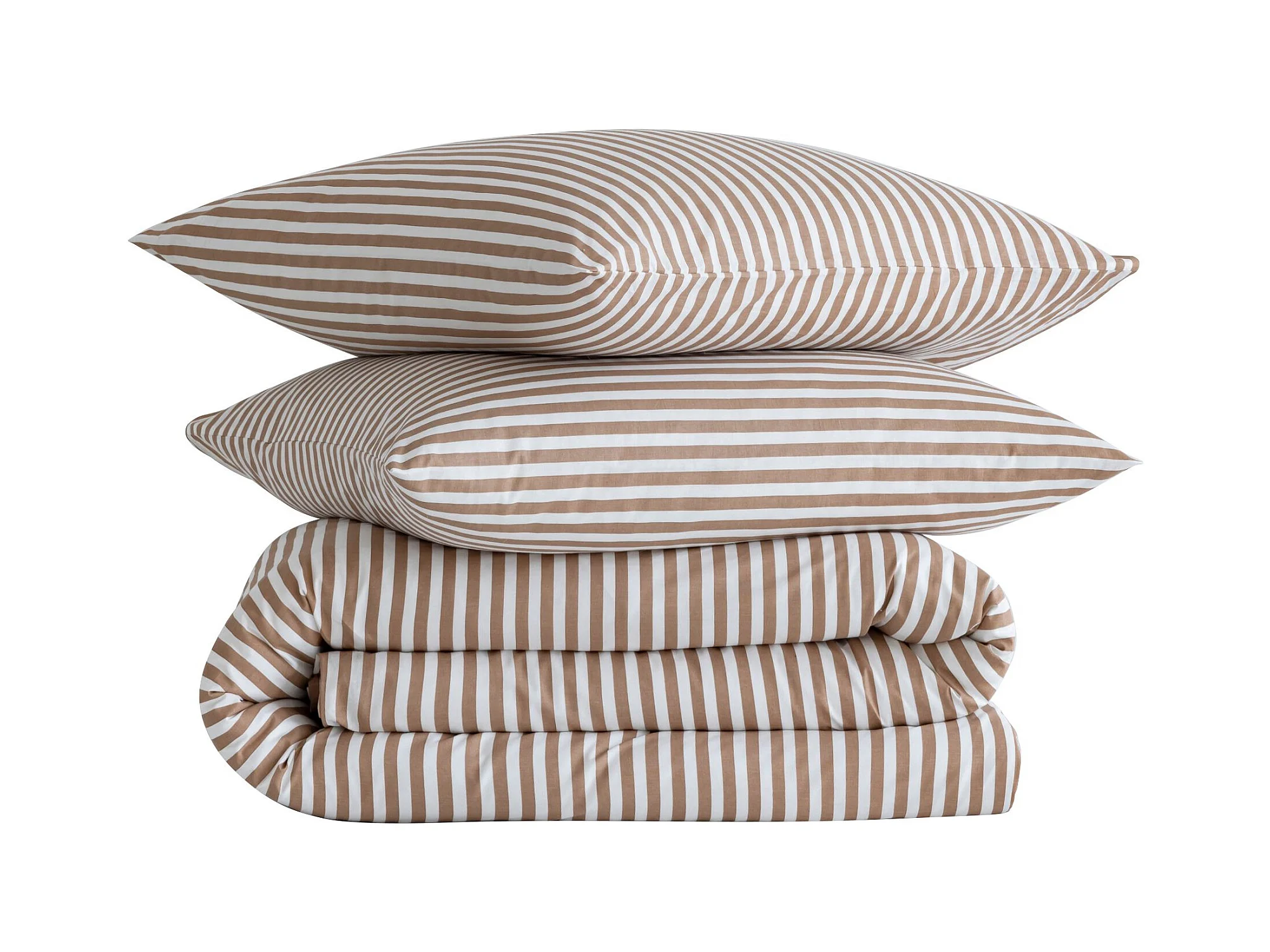Parure de lit 140x200 coton à rayures marron Terre de Nuit Horizon