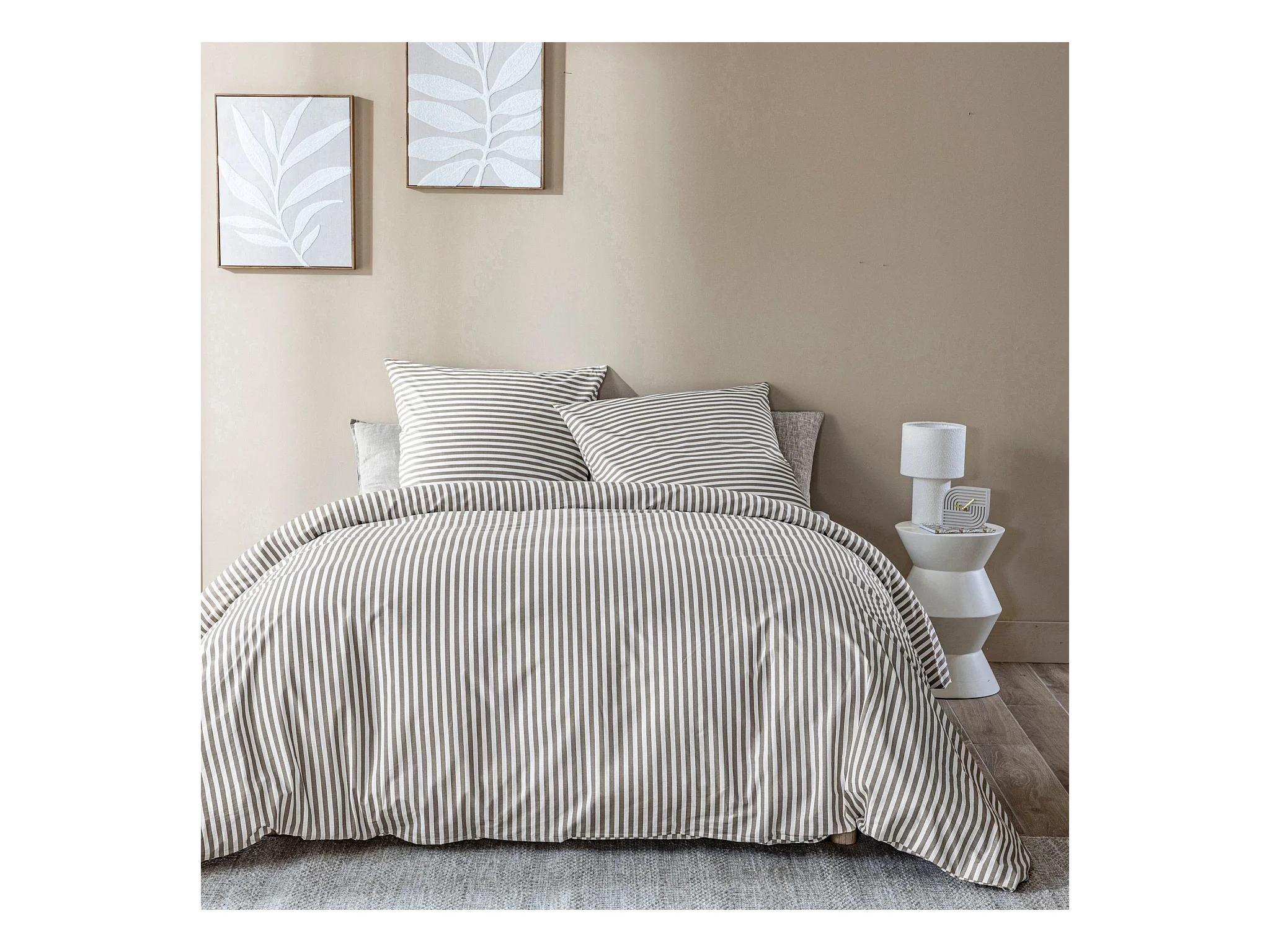 Parure de lit 200x200 coton à rayures taupe Terre de Nuit Horizon