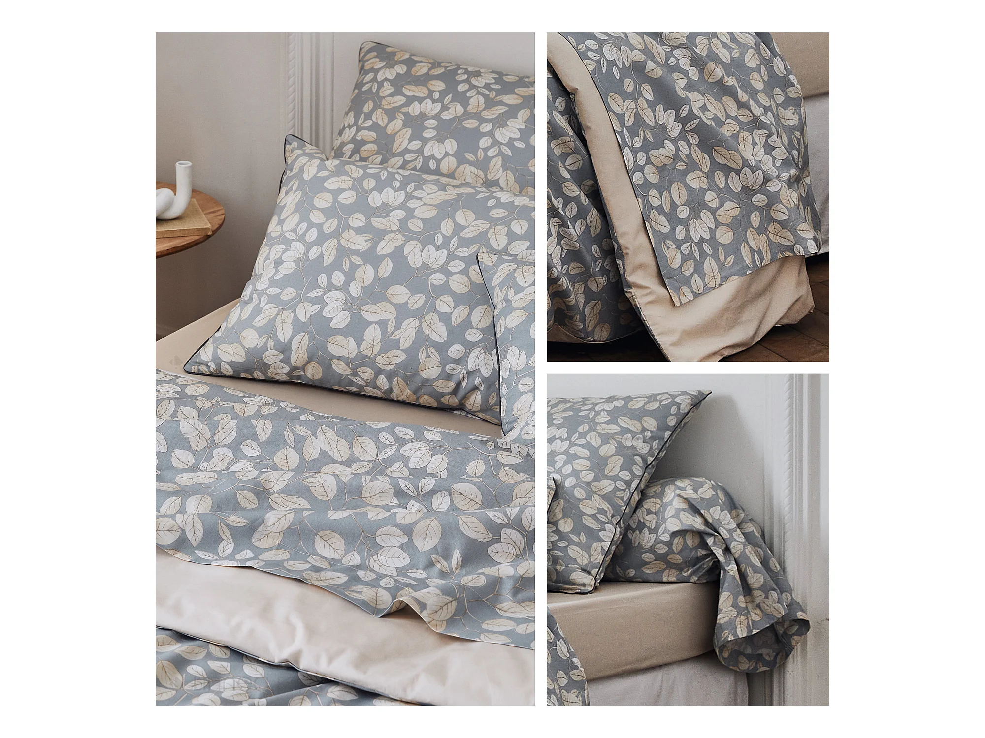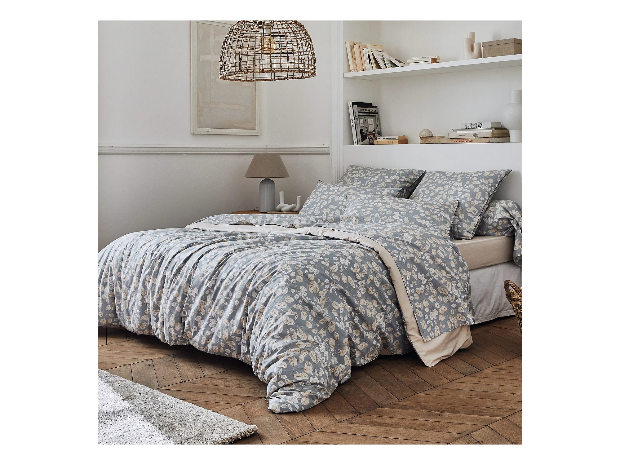 Parure de lit 240x220 cm taies 65x65 cm percale de coton LISON Gris 3 pièces