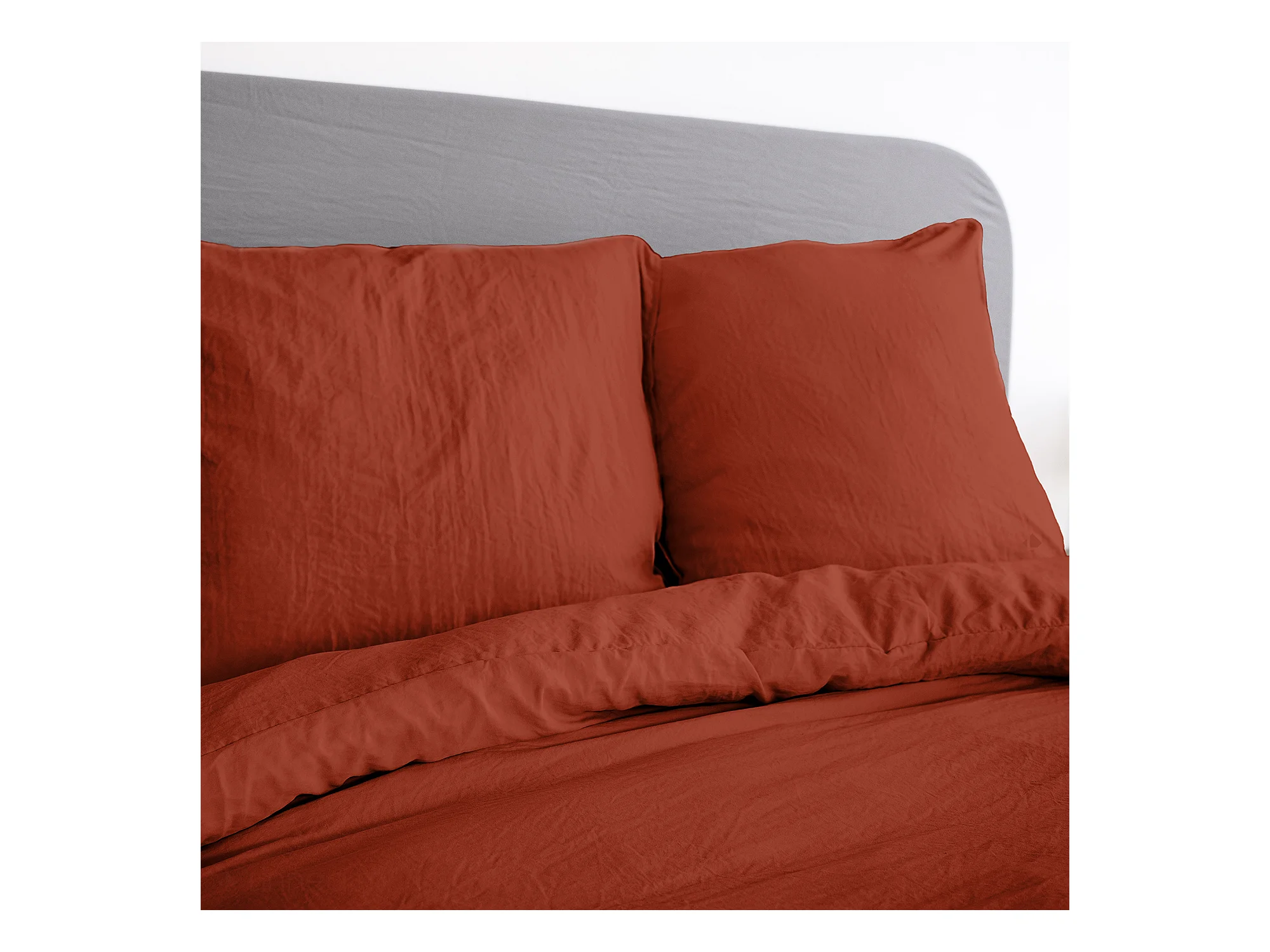 MARGAUX - Taie d'Oreiller 60x60cm Lin Lavé Coloris Paprika