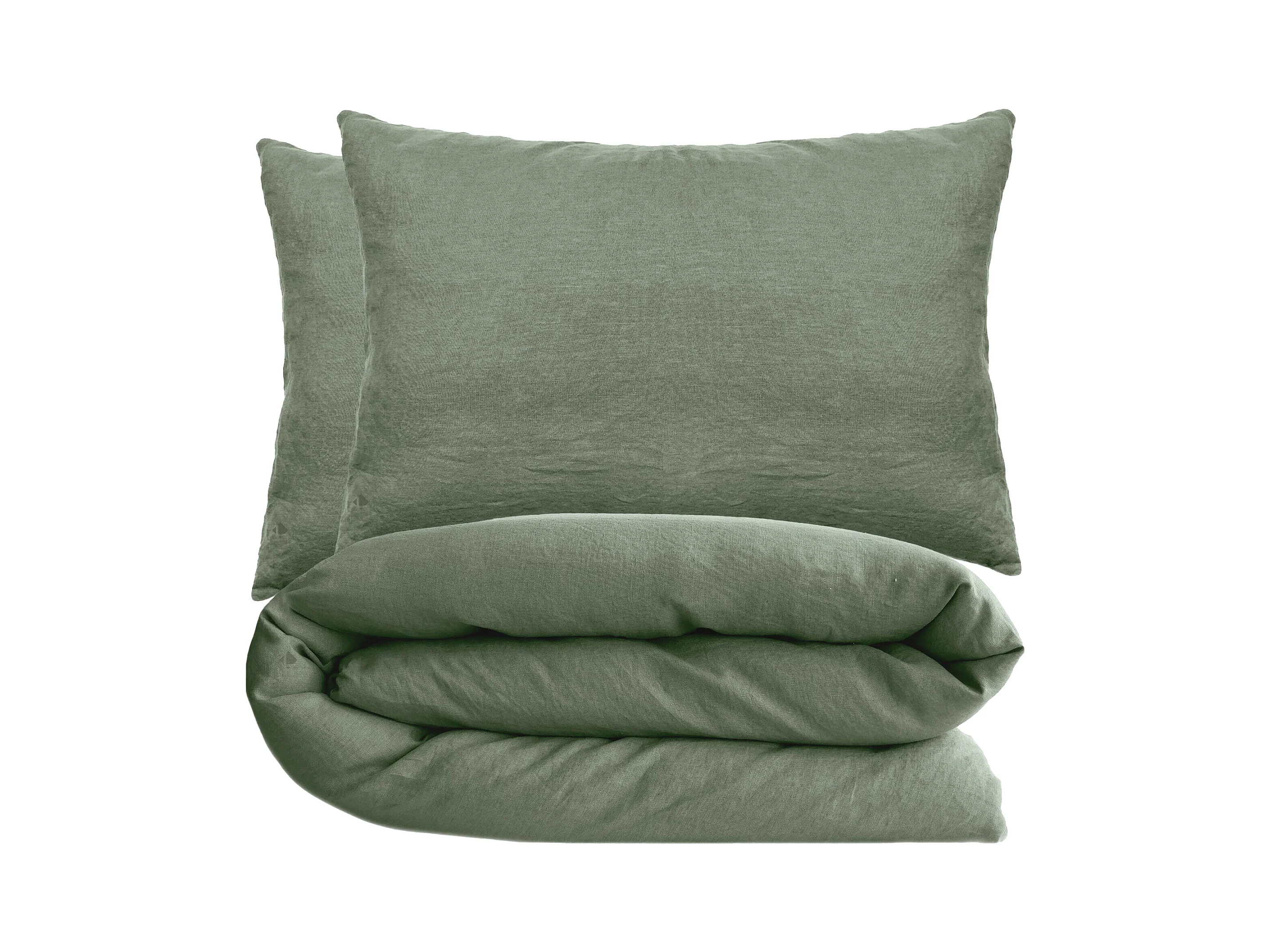 Parure de lit 260x240 cm et 50x70 cm coton lavé PALACE vert mousse 3 pièces