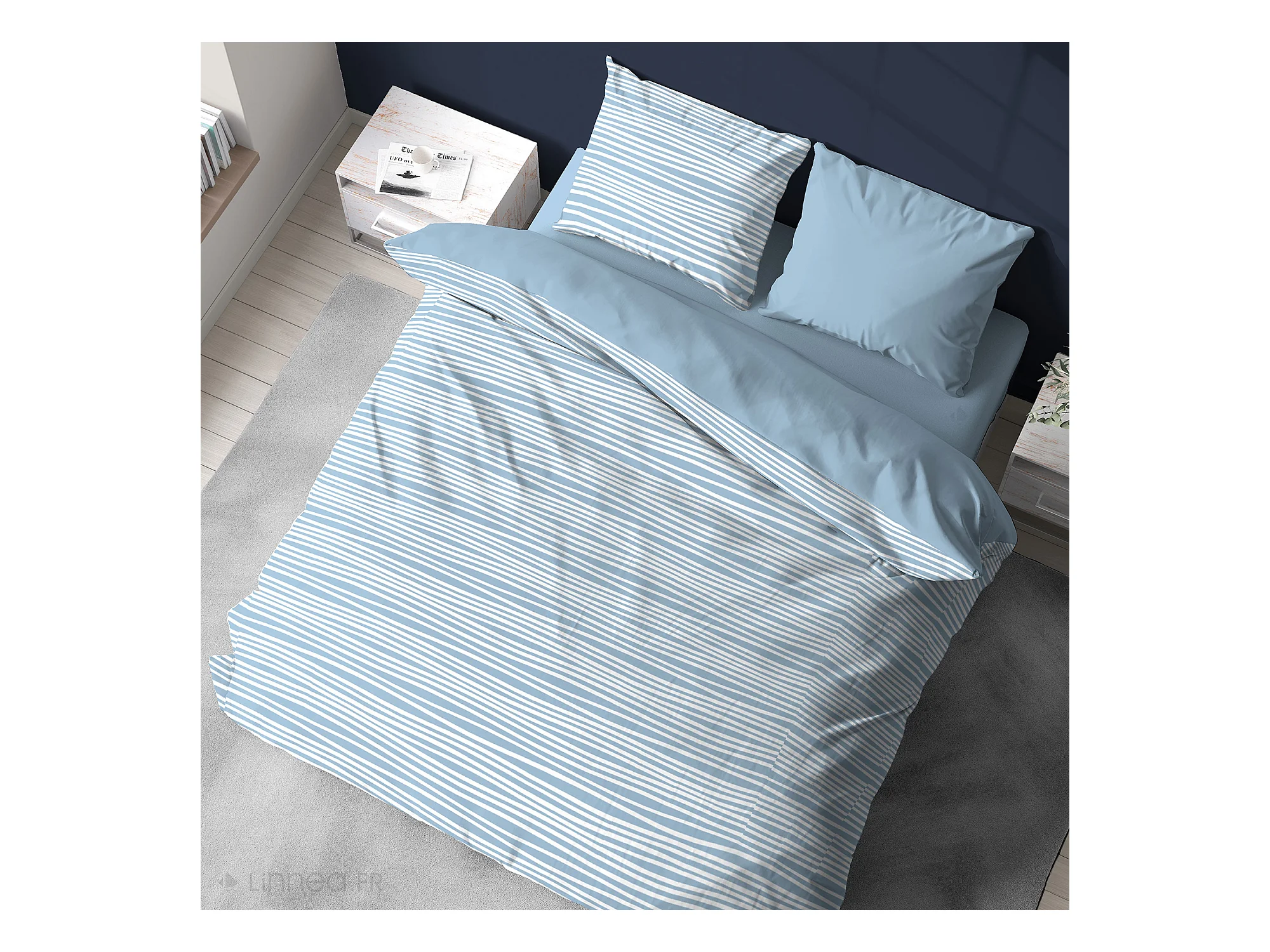 Parure de lit 260x240 cm 100% polyester microfibre BLIS bleu 3 pièces