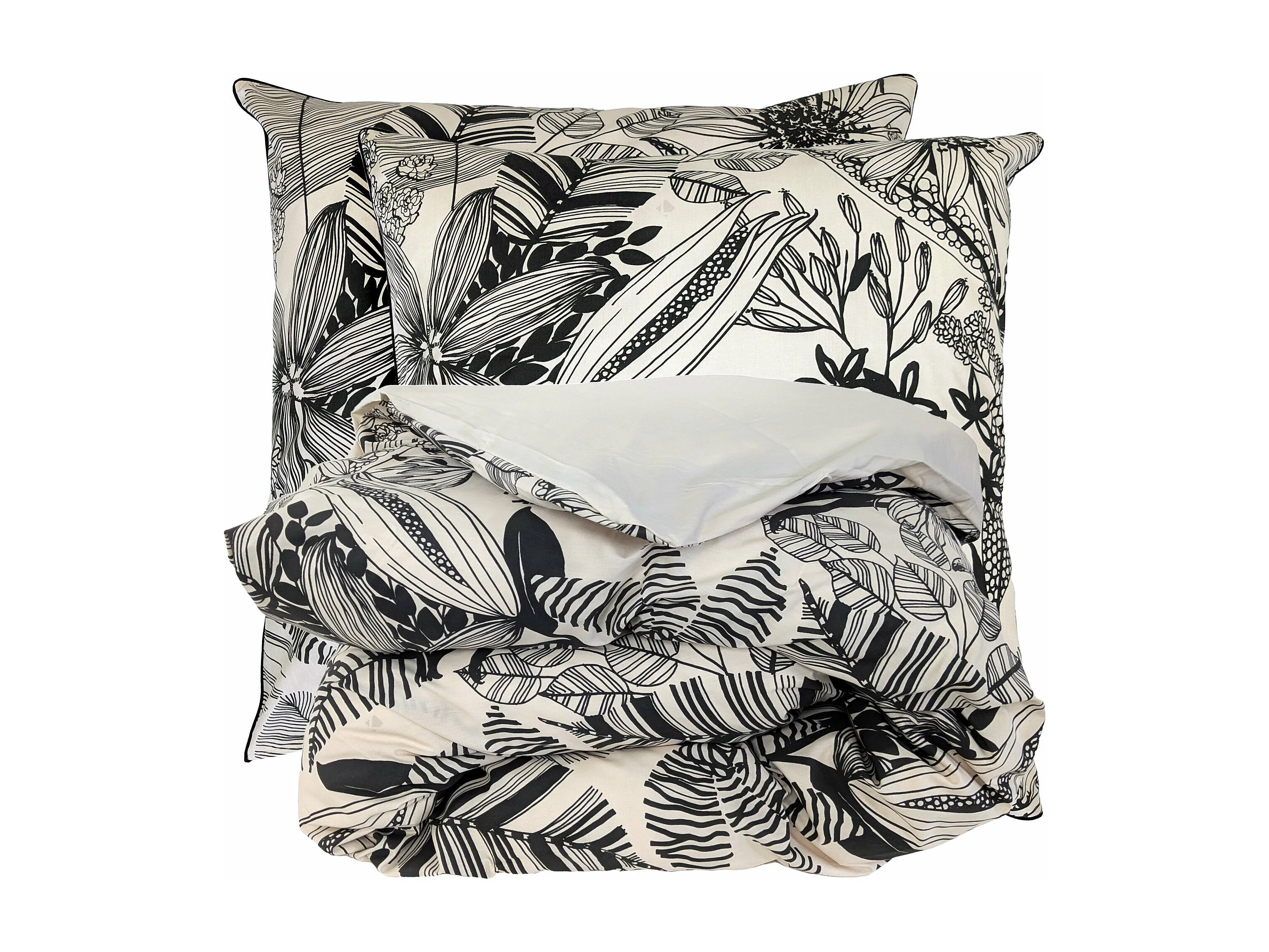 Parure de lit 260x240 cm taies 65x65 cm percale de coton ALBA beige/noir 3 pièces