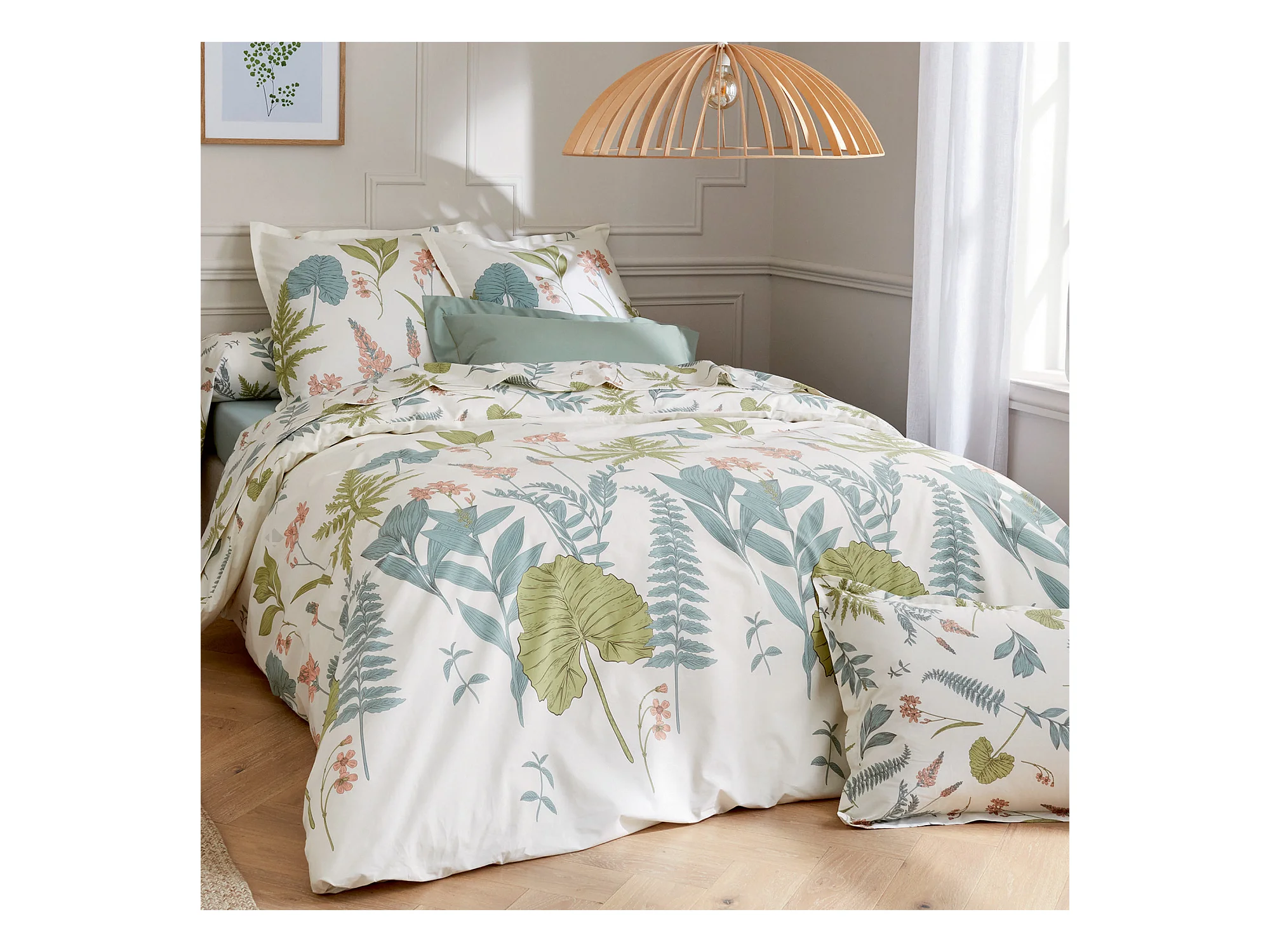 Parure de lit 260x240 cm 50x70 cm percale de coton FÉERIE Blanc sauge