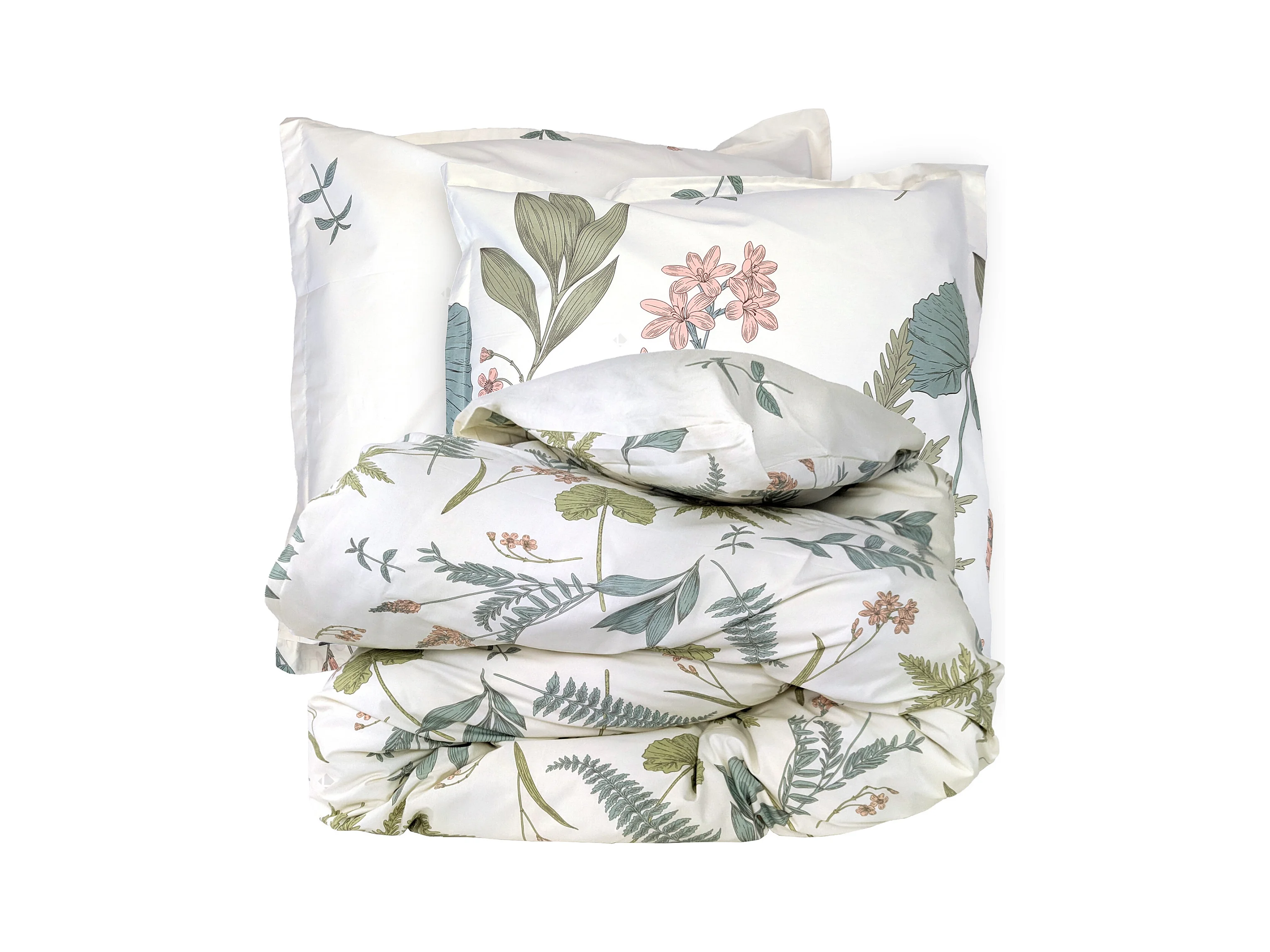 Parure de lit 260x240 cm 65x65 cm percale de coton FÉERIE Blanc sauge