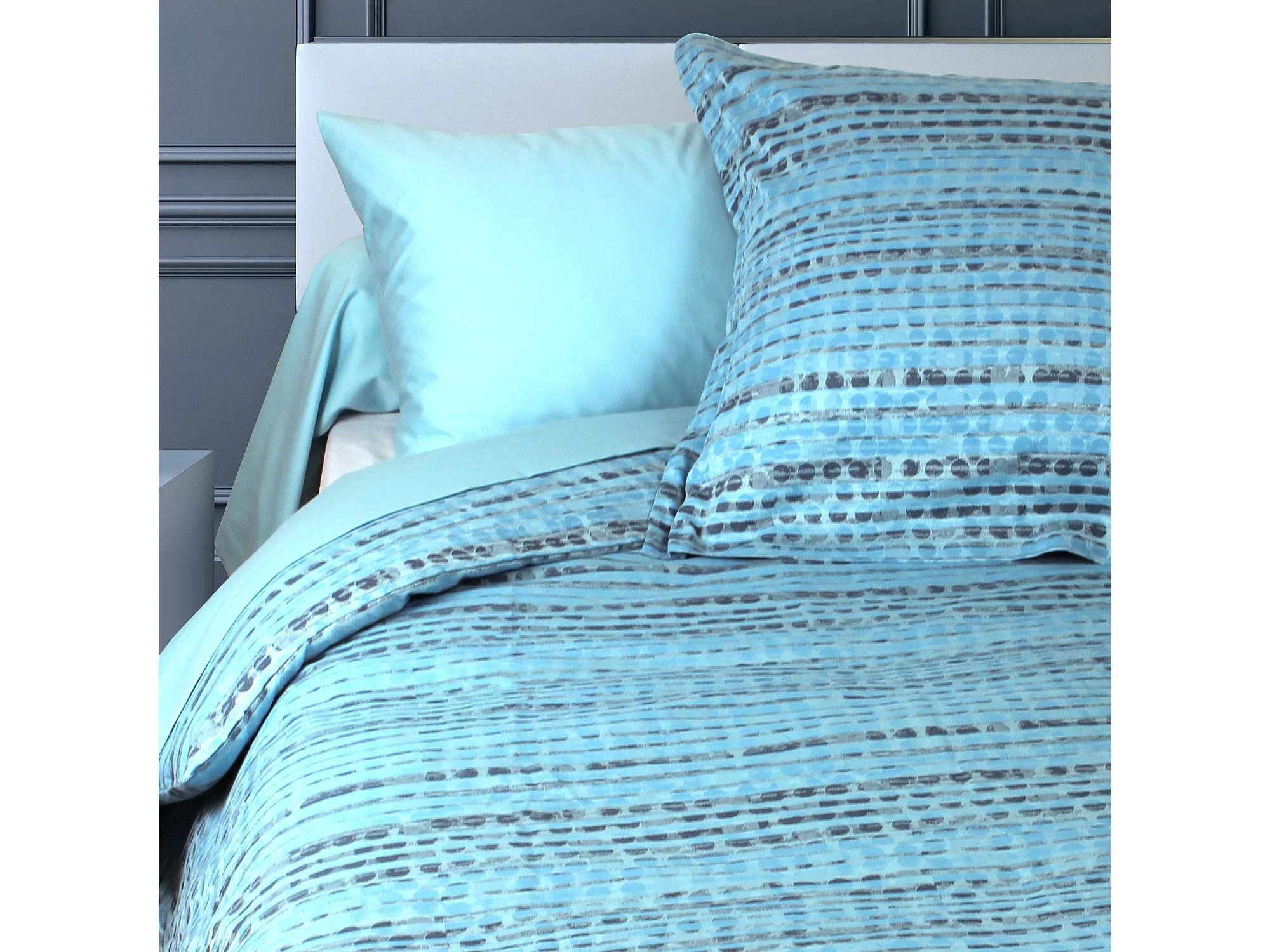 Parure de lit 260x240 cm Satin de coton LOUVRE Bleu clair