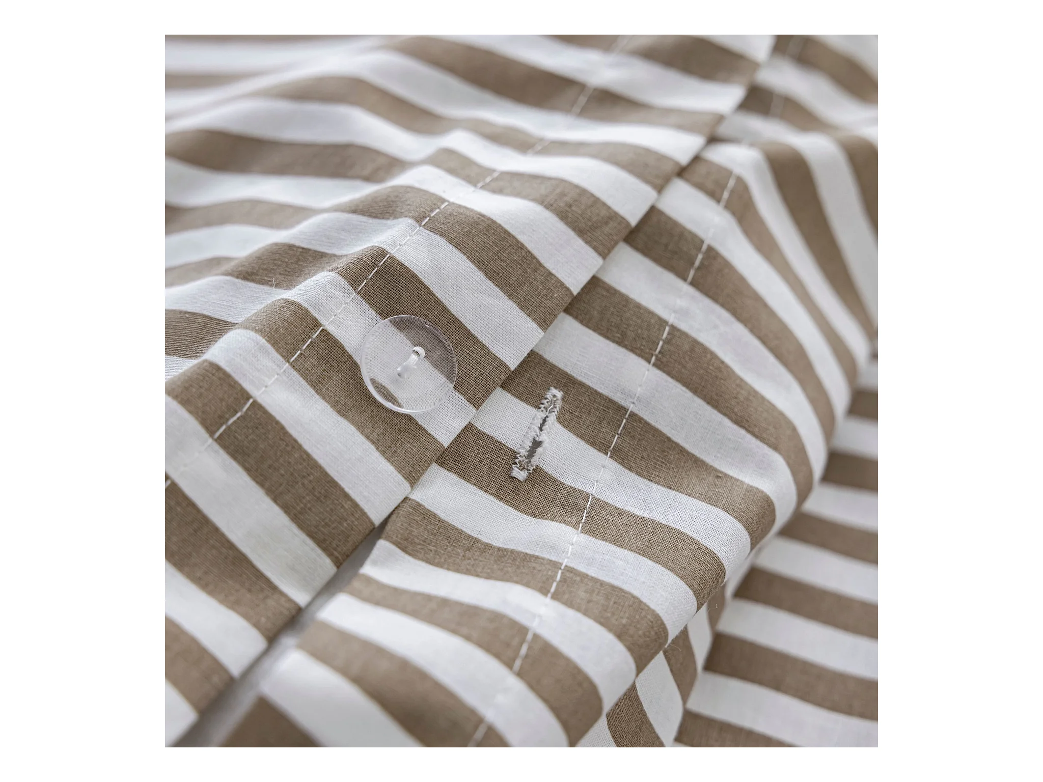 Parure de lit 140x200 coton à rayures taupe Terre de Nuit Horizon