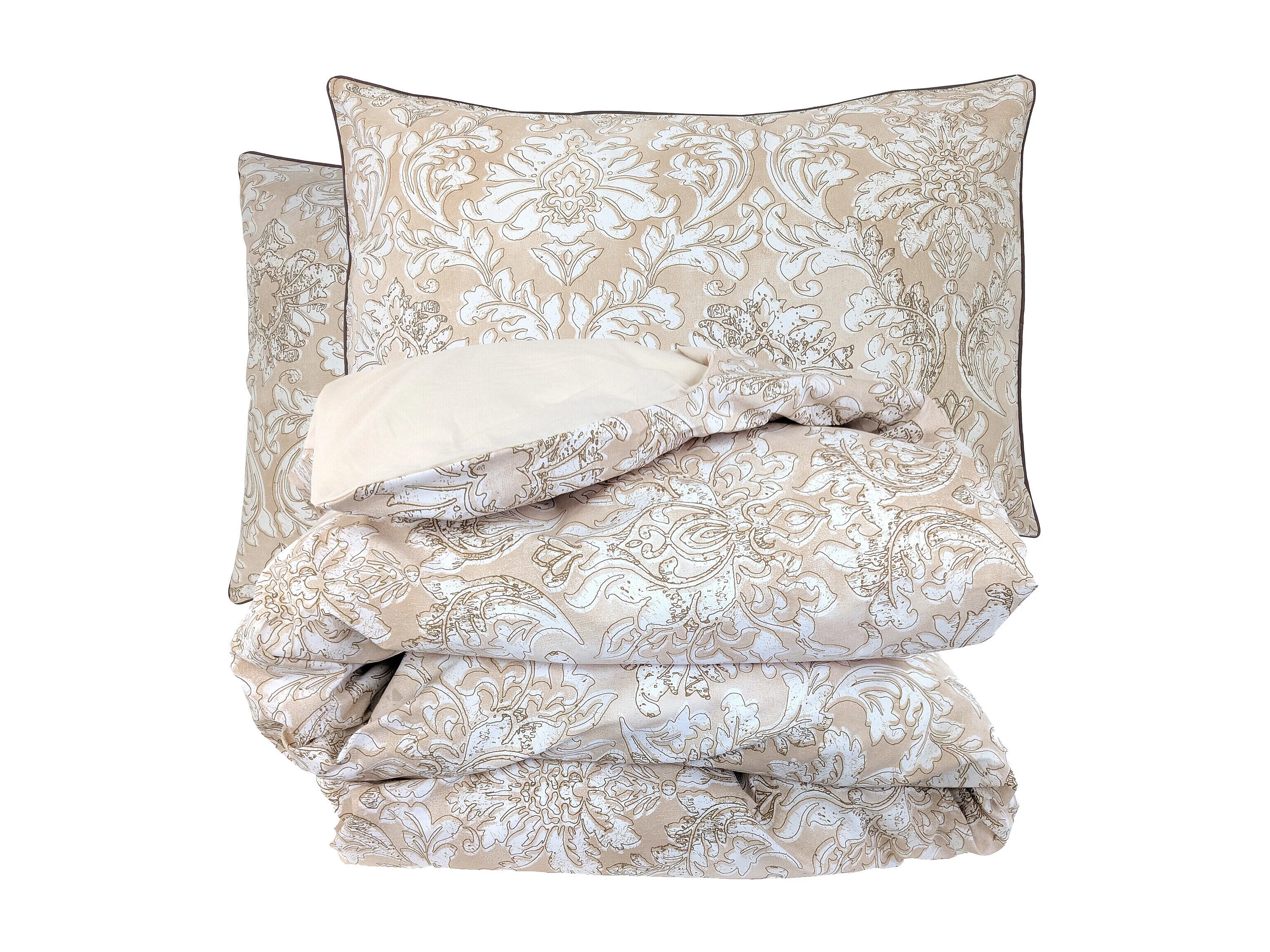 Parure de lit 280x240 cm 50X70 cm percale de coton PALAZZO beige 3 pièces