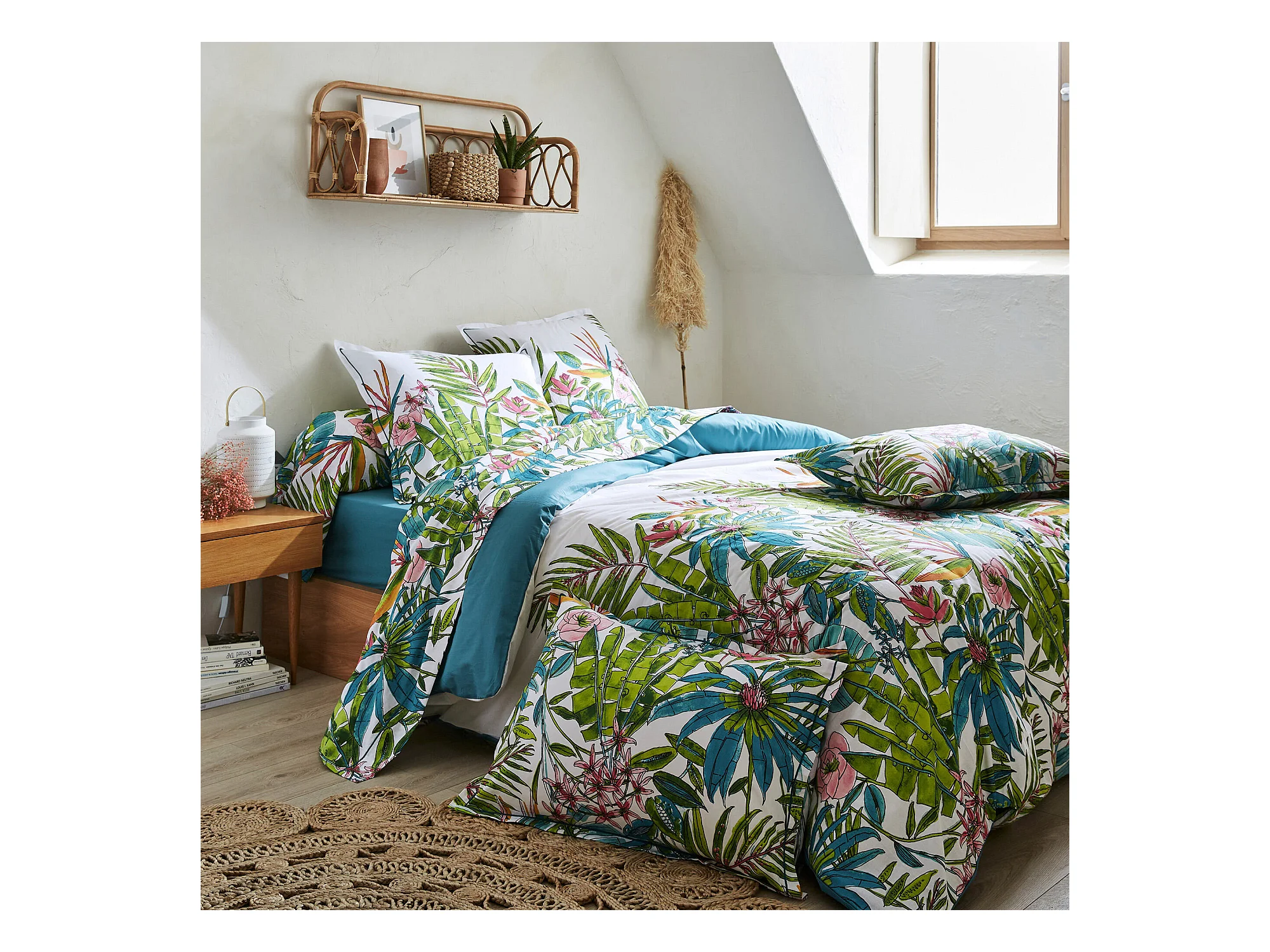 Parure de lit 280x240 cm coton SUMATRA bleu Paon 3 pièces