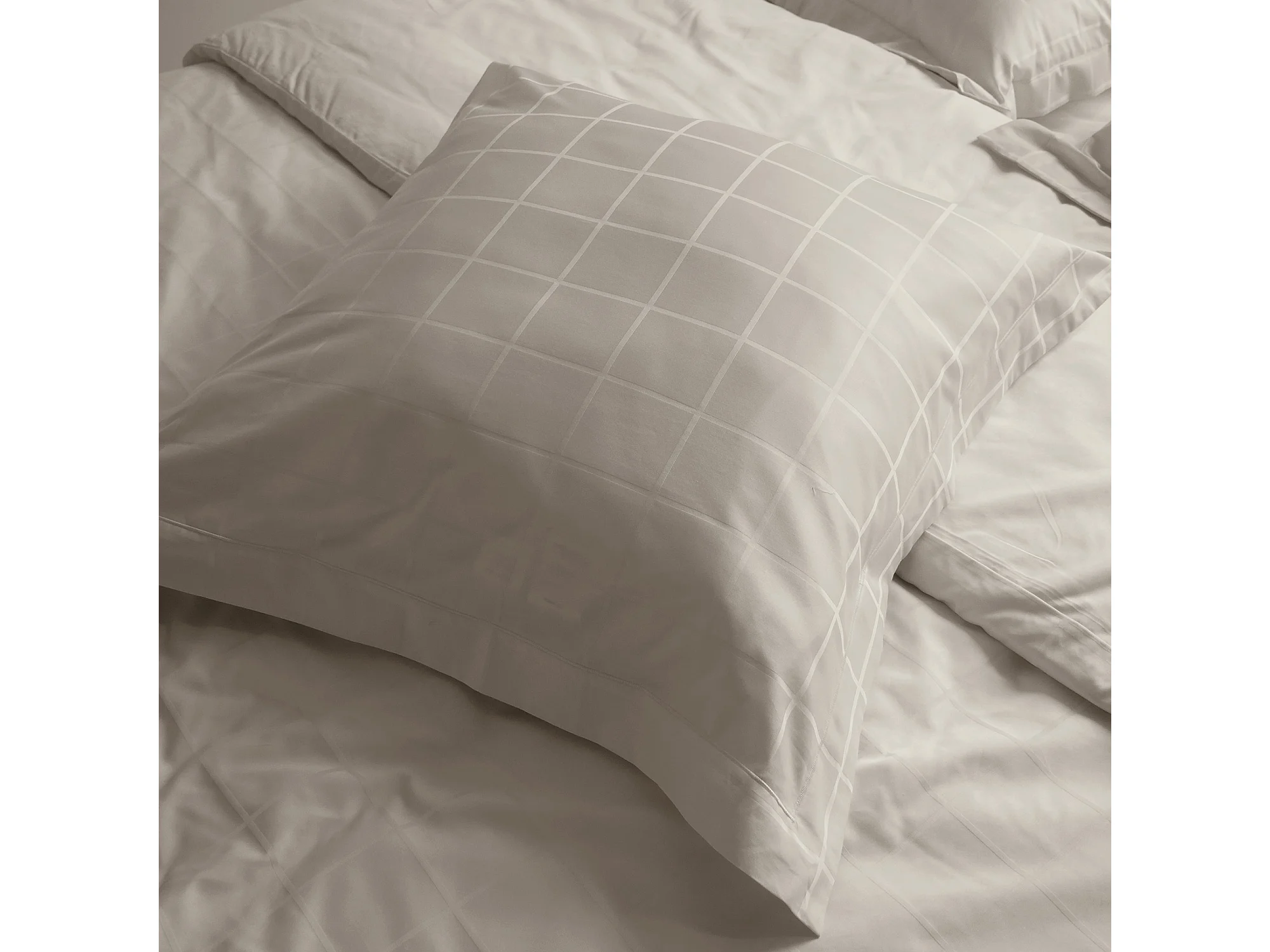 Parure de lit 280x240 cm set 65x65 satin CONCERTO carreaux beige Lin