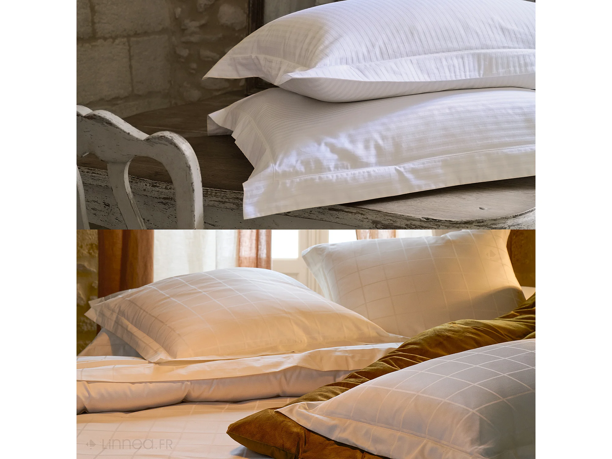 Parure de lit 280x240 cm set 65x65 satin CONCERTO rayures vert Lichen