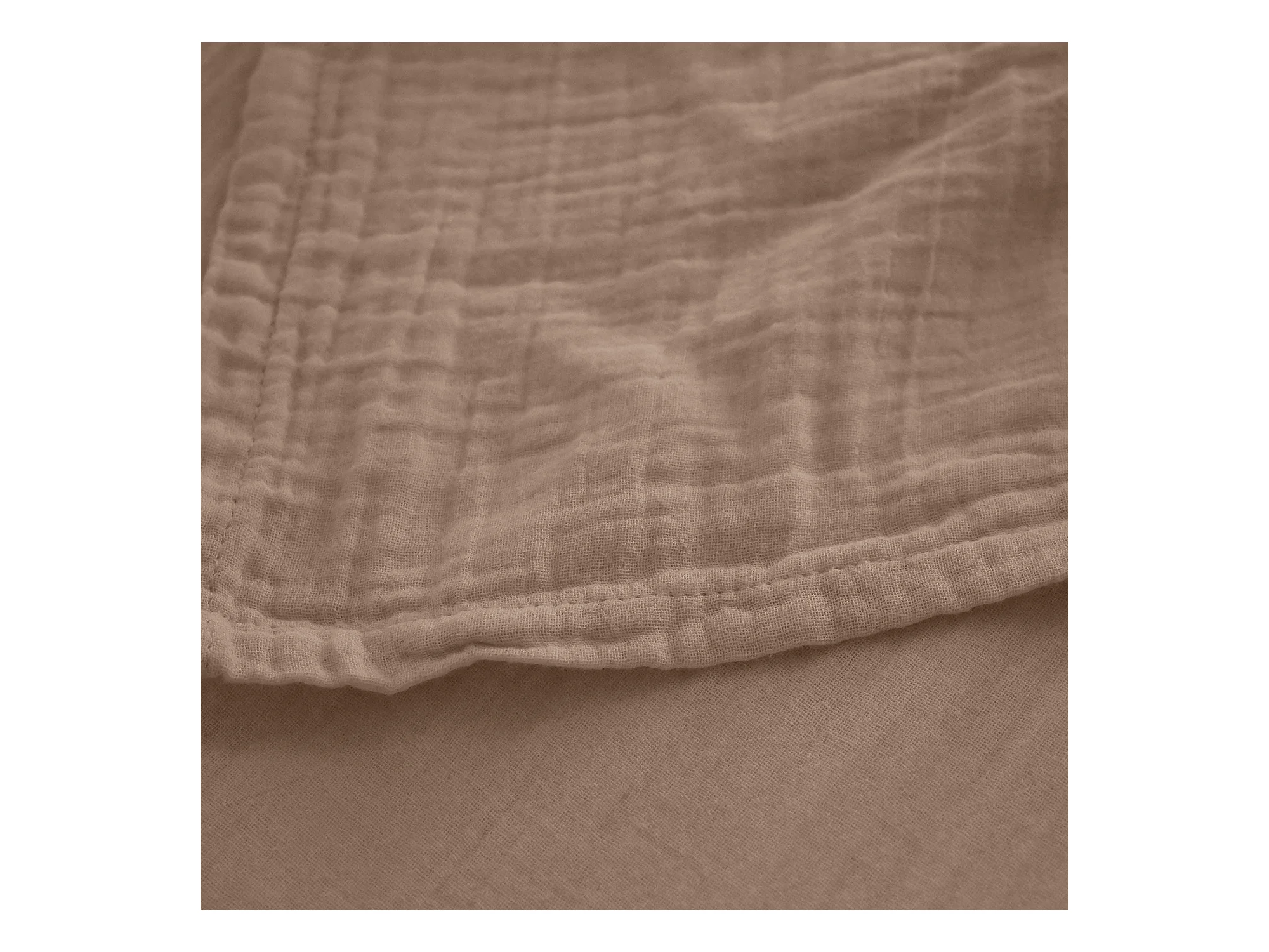 Parure de lit 3 pièces 240x220 cm et 50x70 cm mousseline de coton MILOS marron camel
