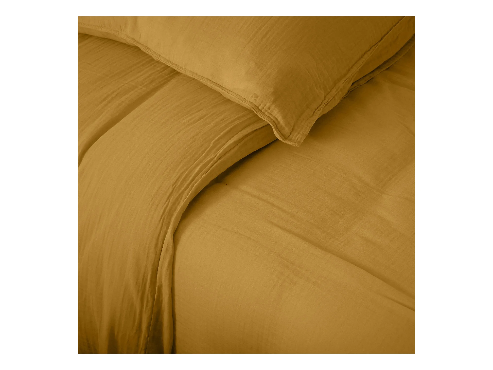 Parure de lit 3 pièces 260x240 cm et 65x65 cm mousseline de coton MILOS jaune curry