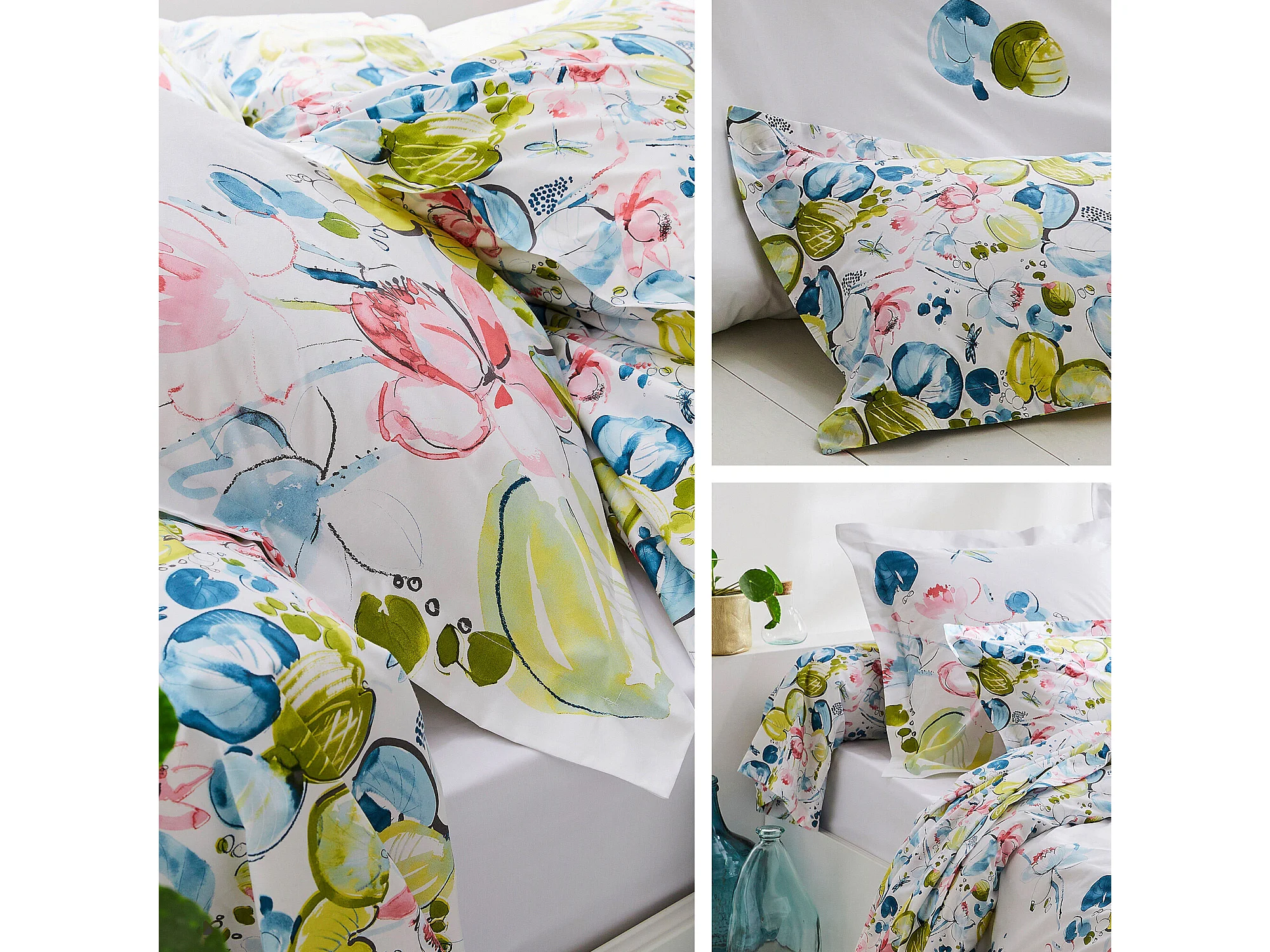 Parure de lit 300x240 cm 50x70 cm percale coton NENUPHAR aqua