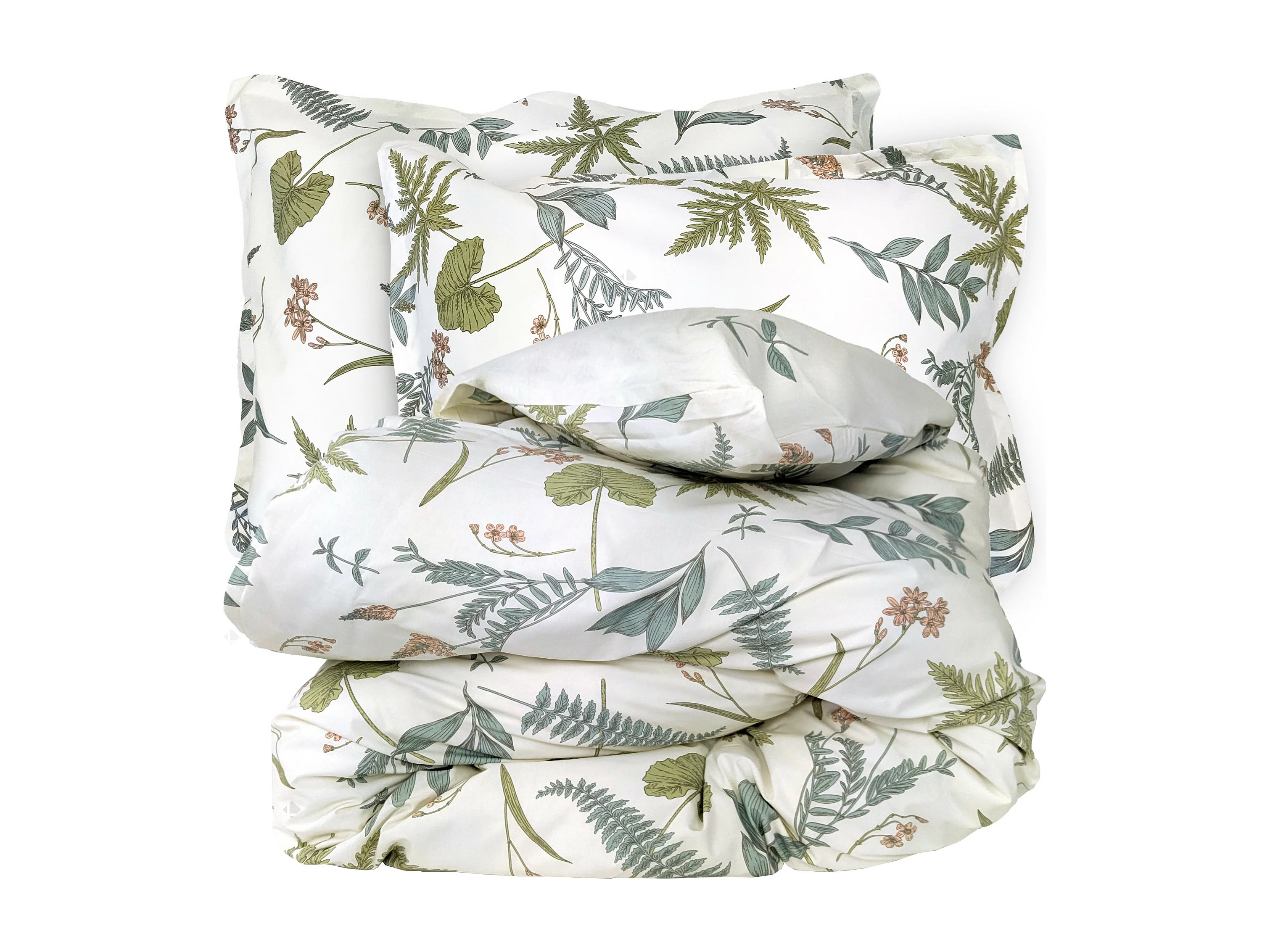 Parure de lit 300x240 cm 50x70 cm percale de coton FÉERIE Blanc sauge