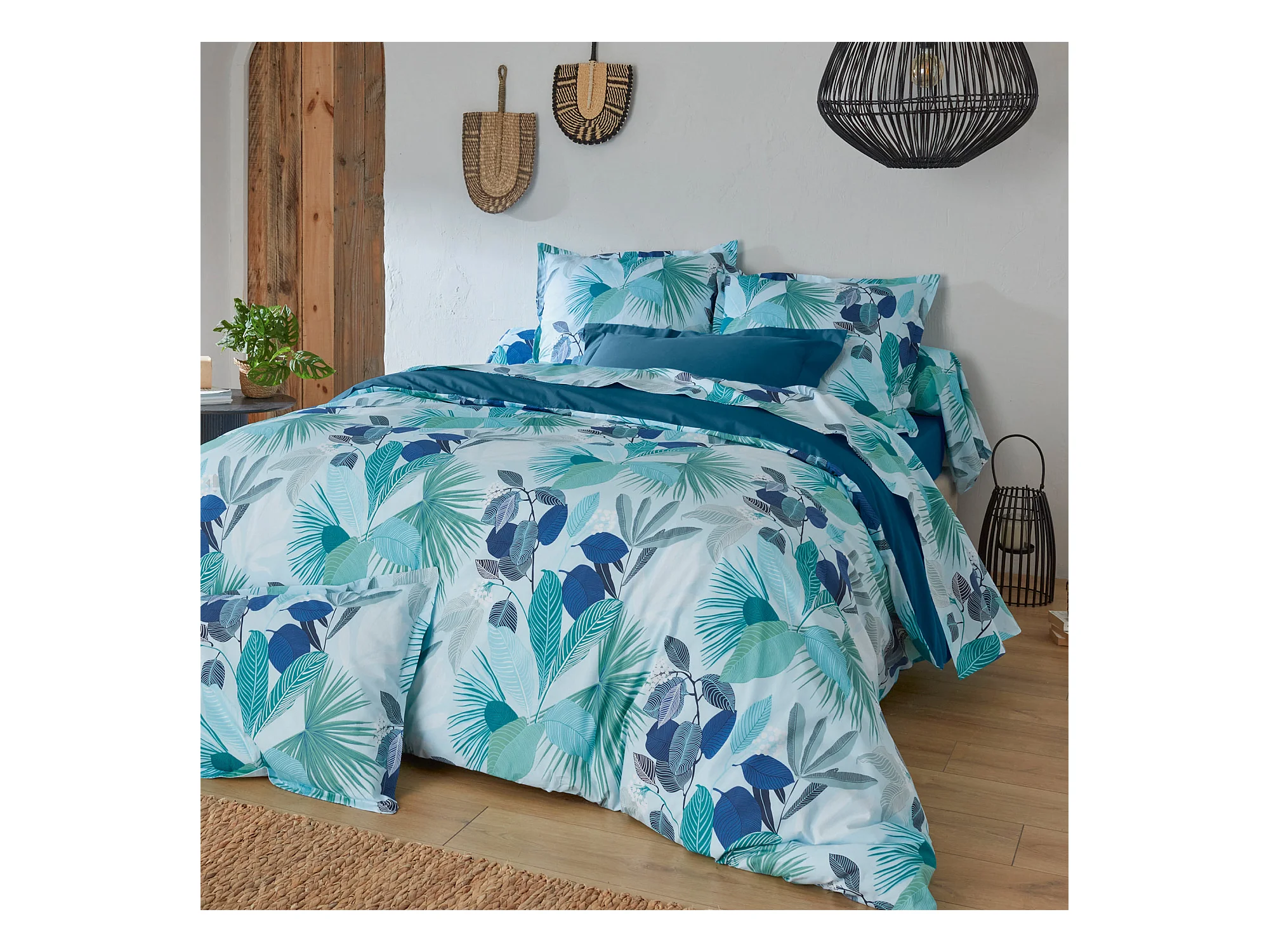 Parure de lit 300x240 cm taies 50x70 cm percale de coton MOOREA PACIFIC bleu/vert 3 pièces