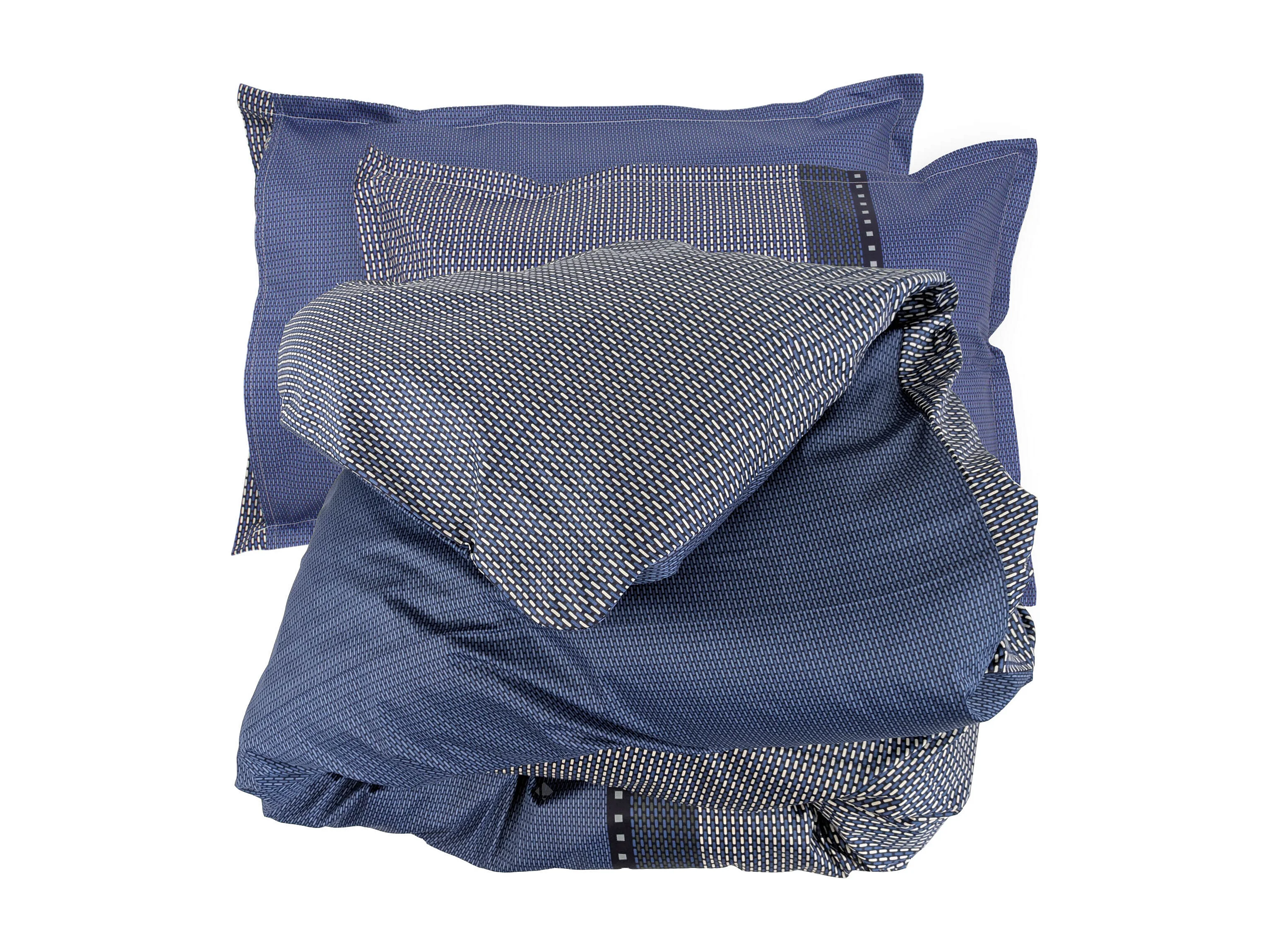 Parure de lit 300x240 cm 50x70 cm en satin de coton ENZO bleu