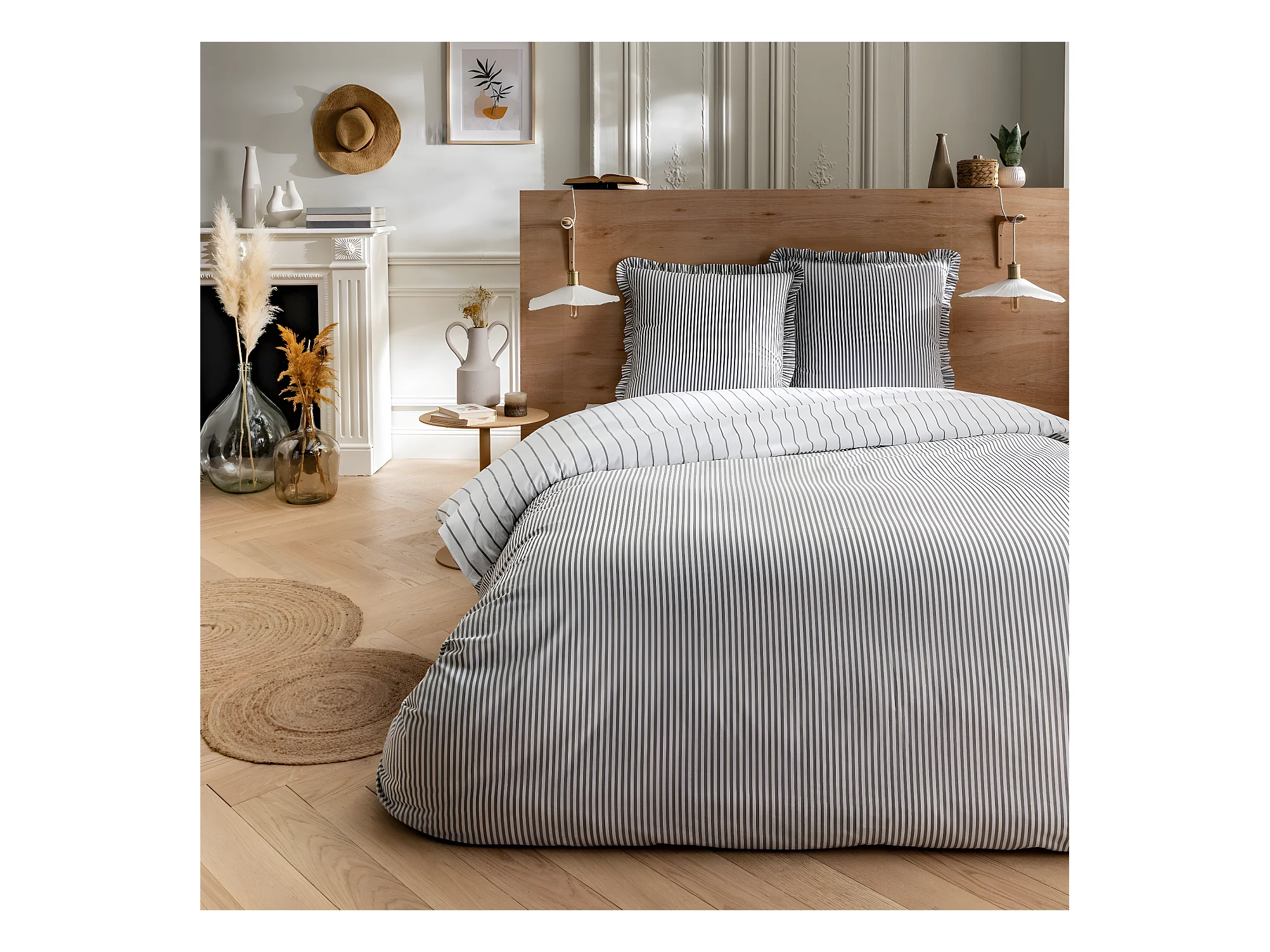 Parure de lit 2 personnes en coton 57 fils imprimé blanc 260x240cm