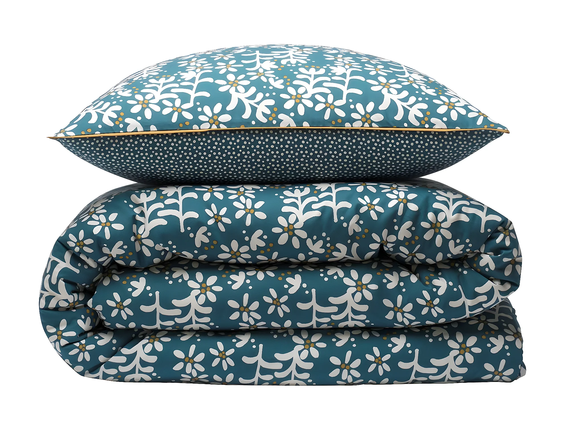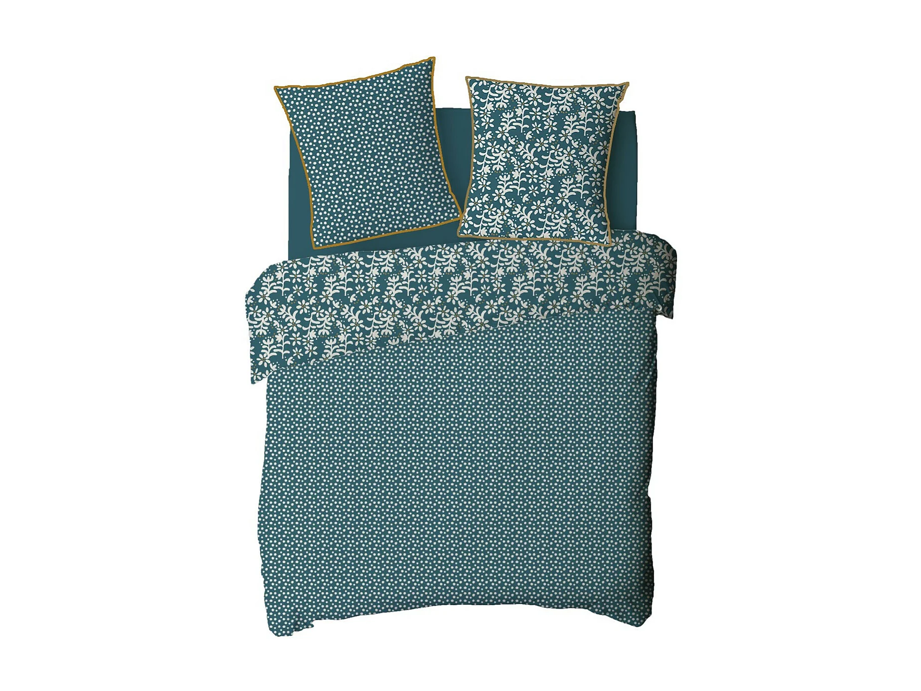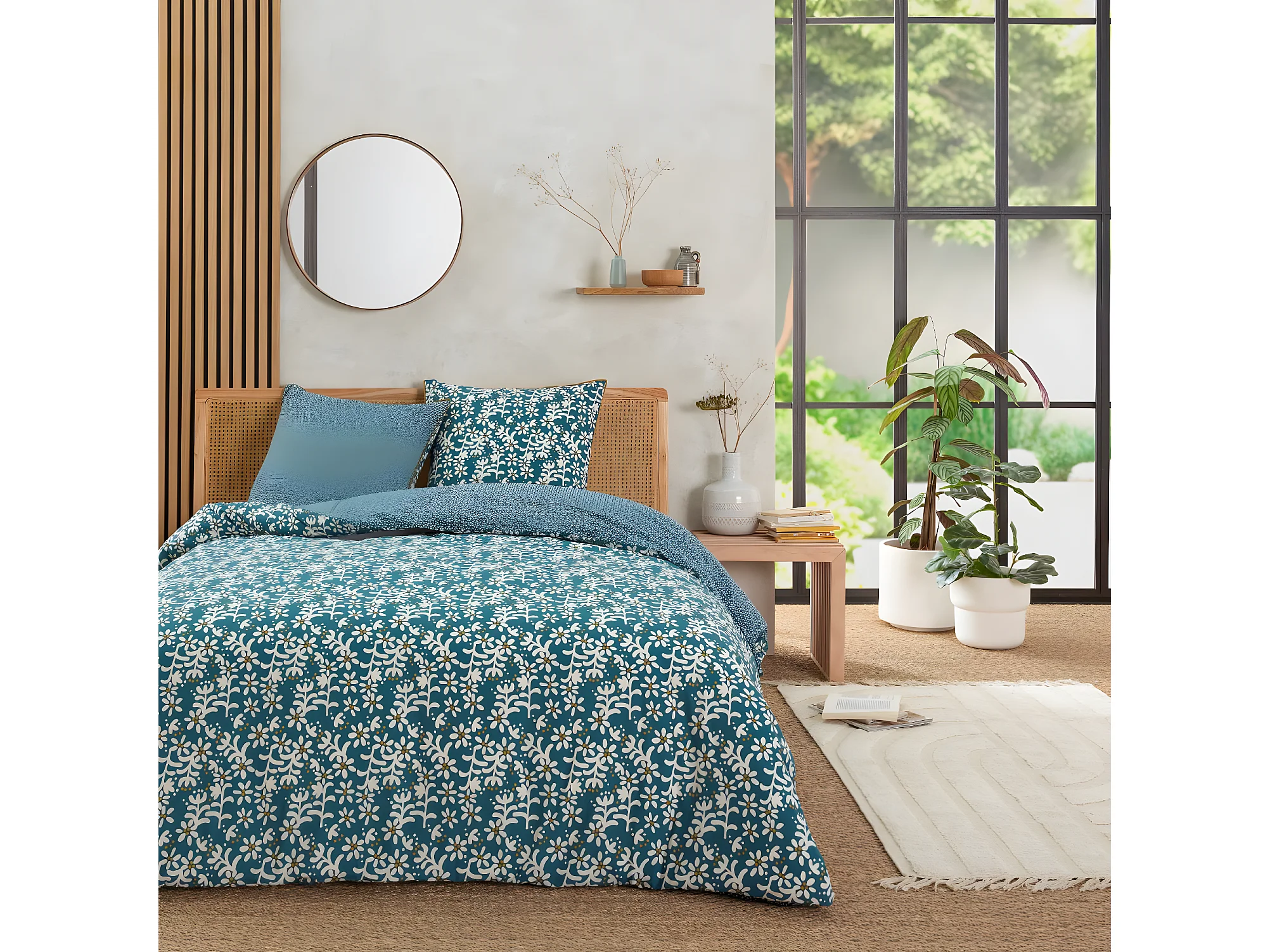 Parure housse de couette et taies d'oreiller gaze de coton marine