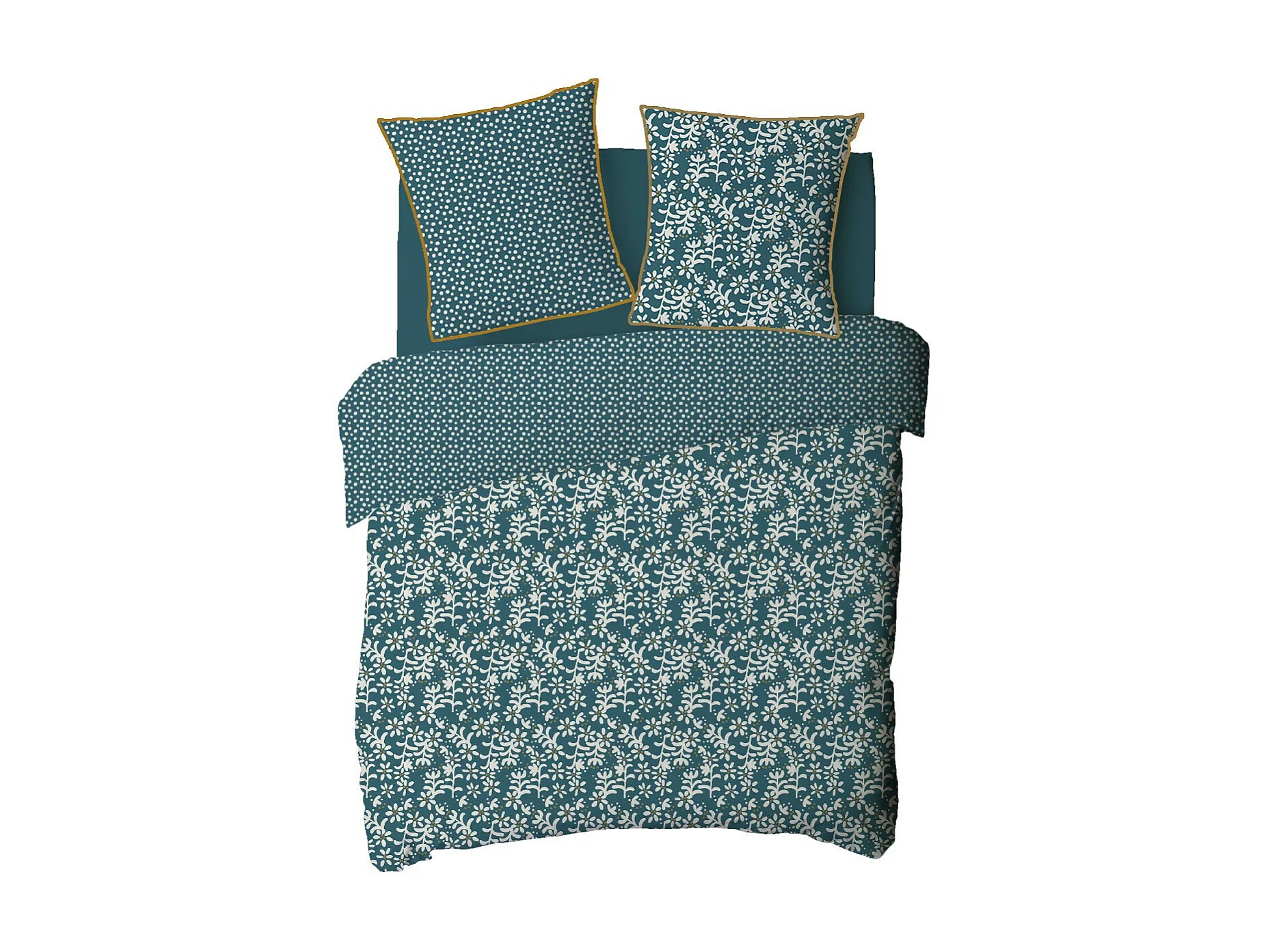 Parure de lit 2 personnes floral réversible à pois 240x220cm