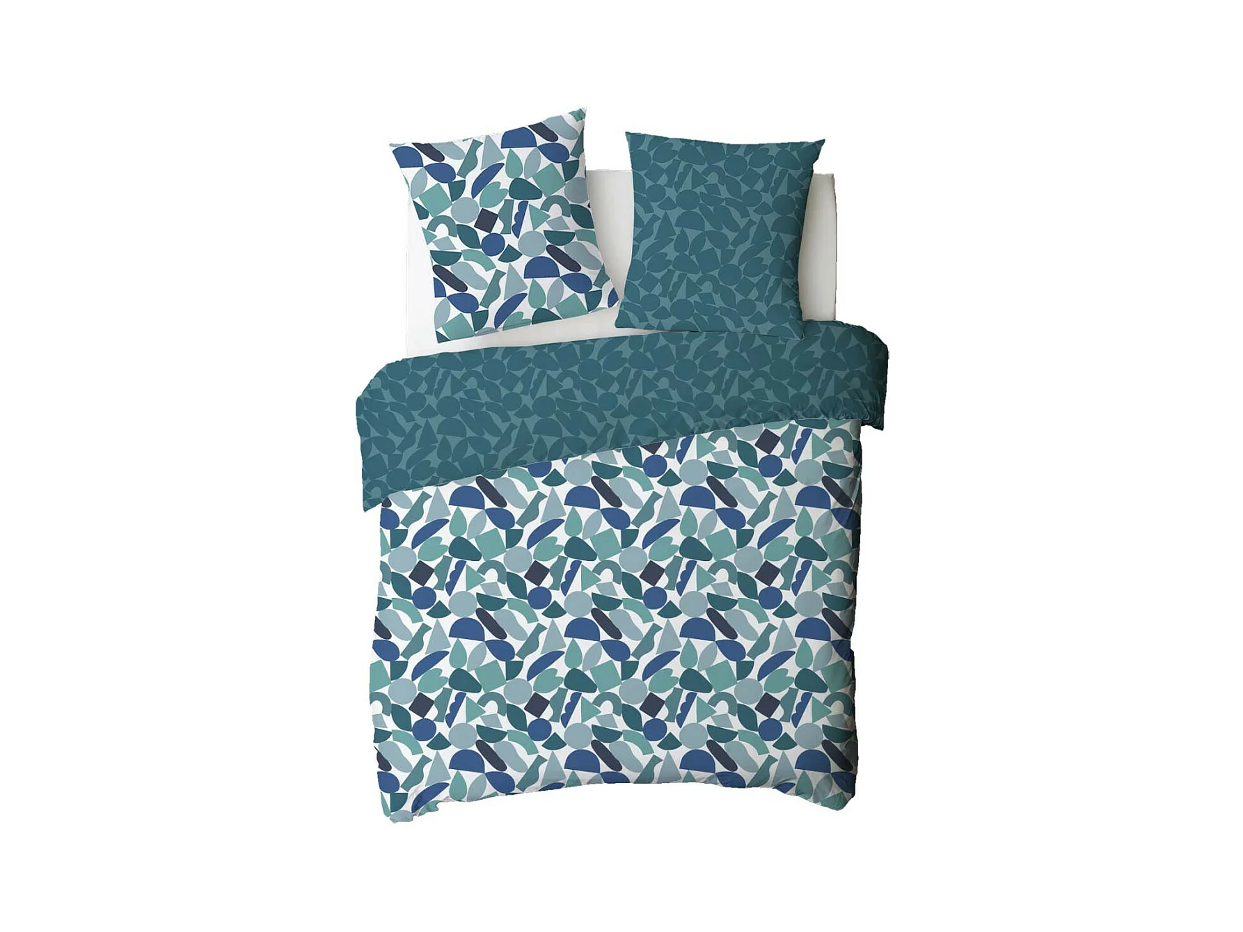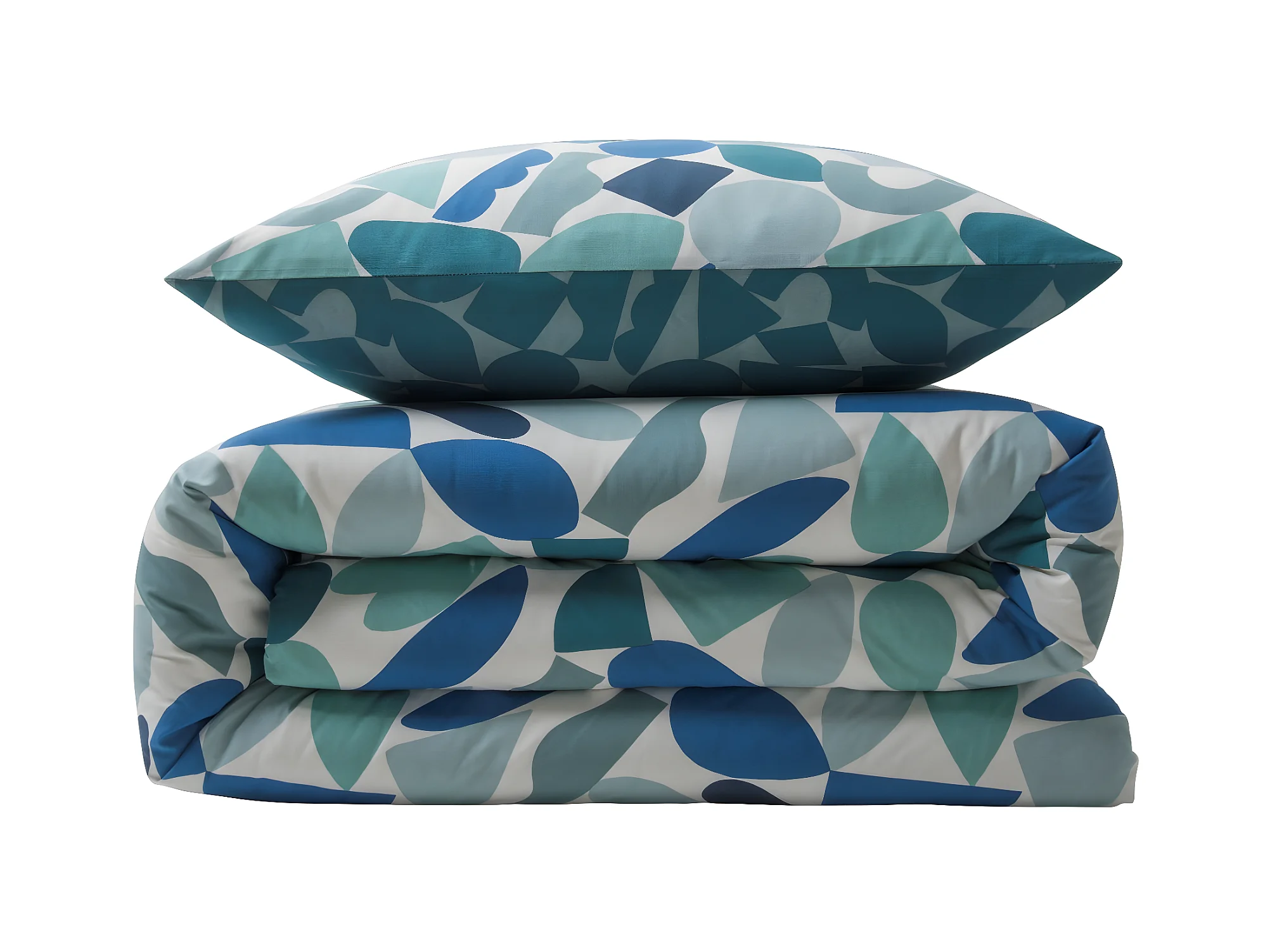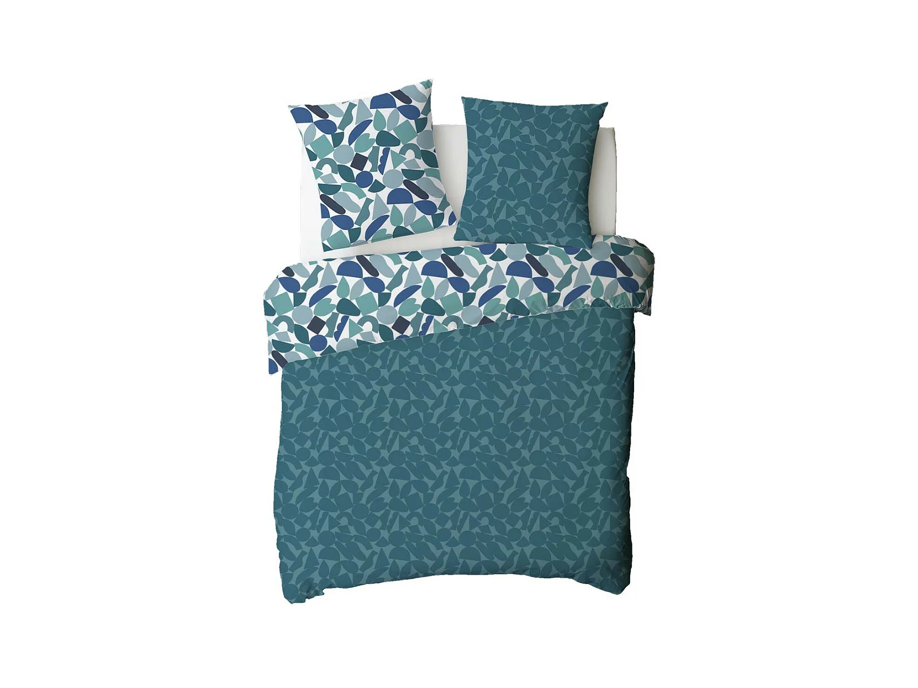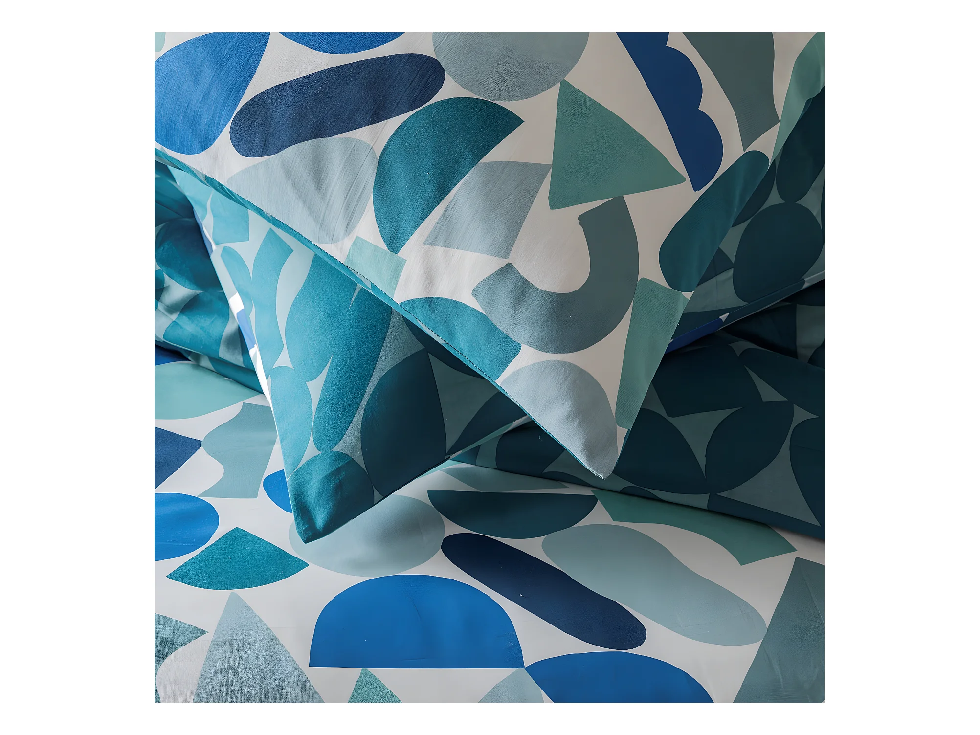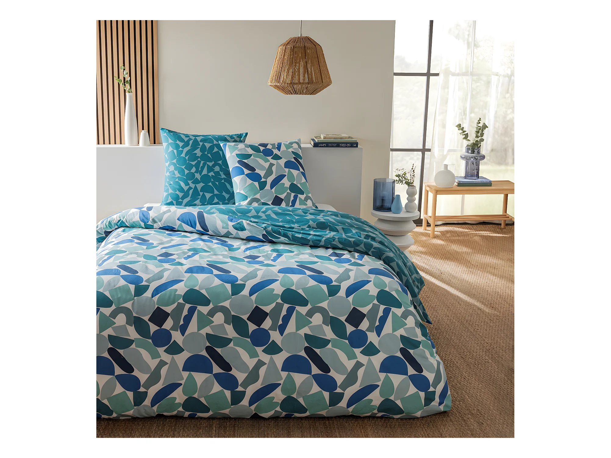Parure de lit 2 personnes en percale 70 fils imprimé bleu 240x220cm