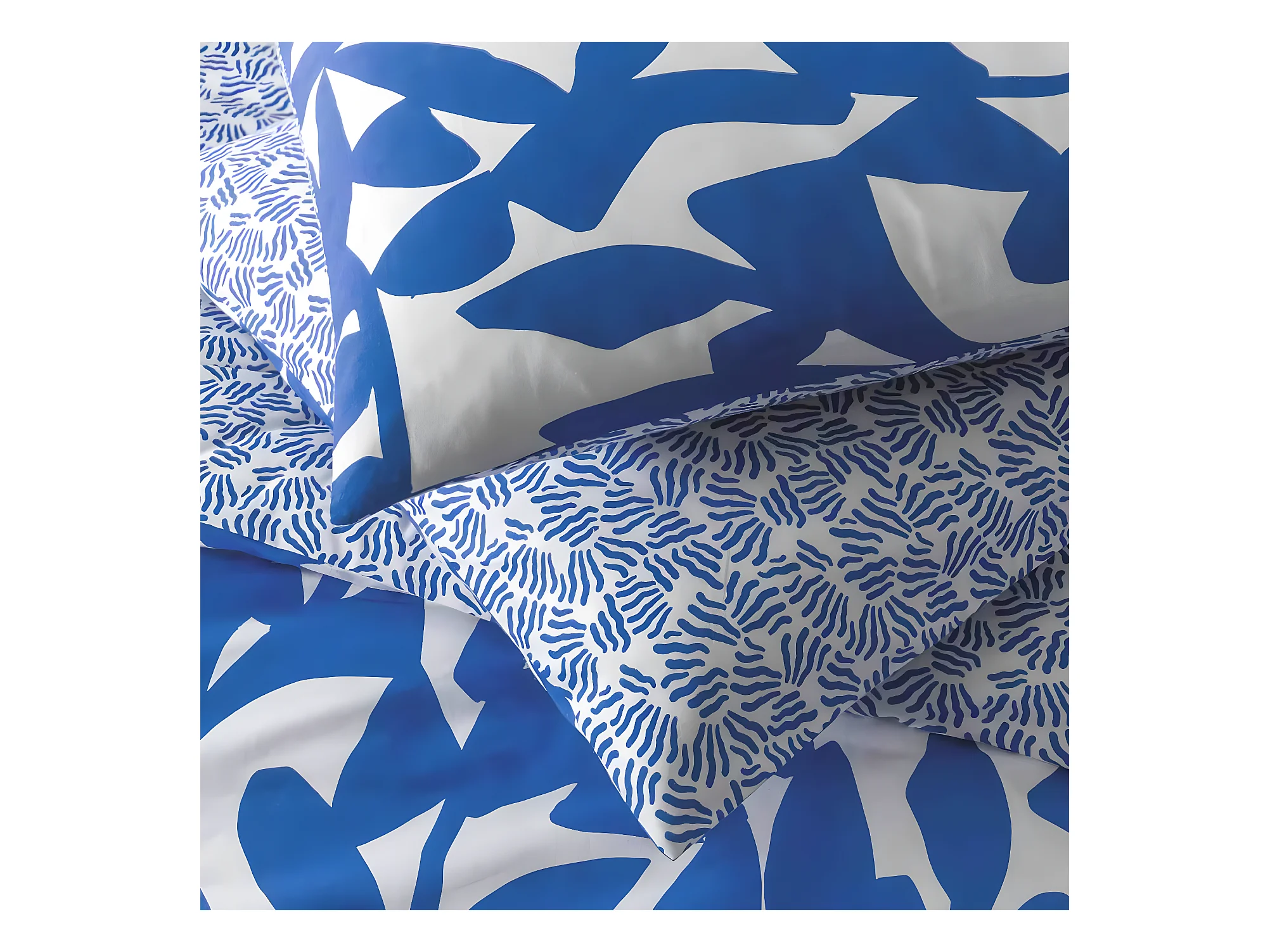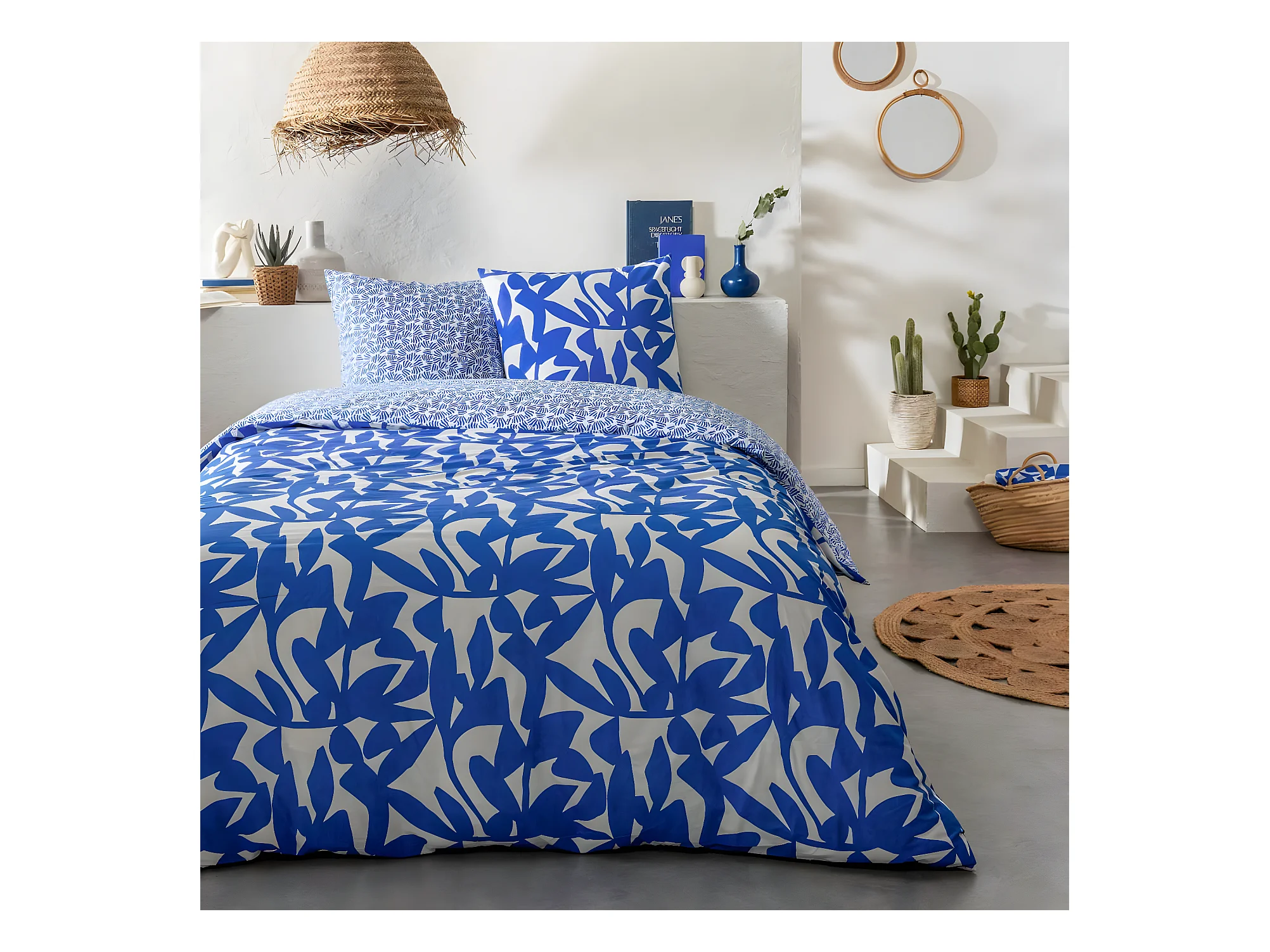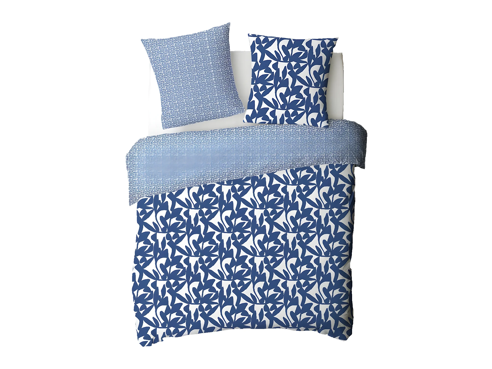 Parure de lit 2 personnes en coton 57 fils imprimé bleu 240x220cm