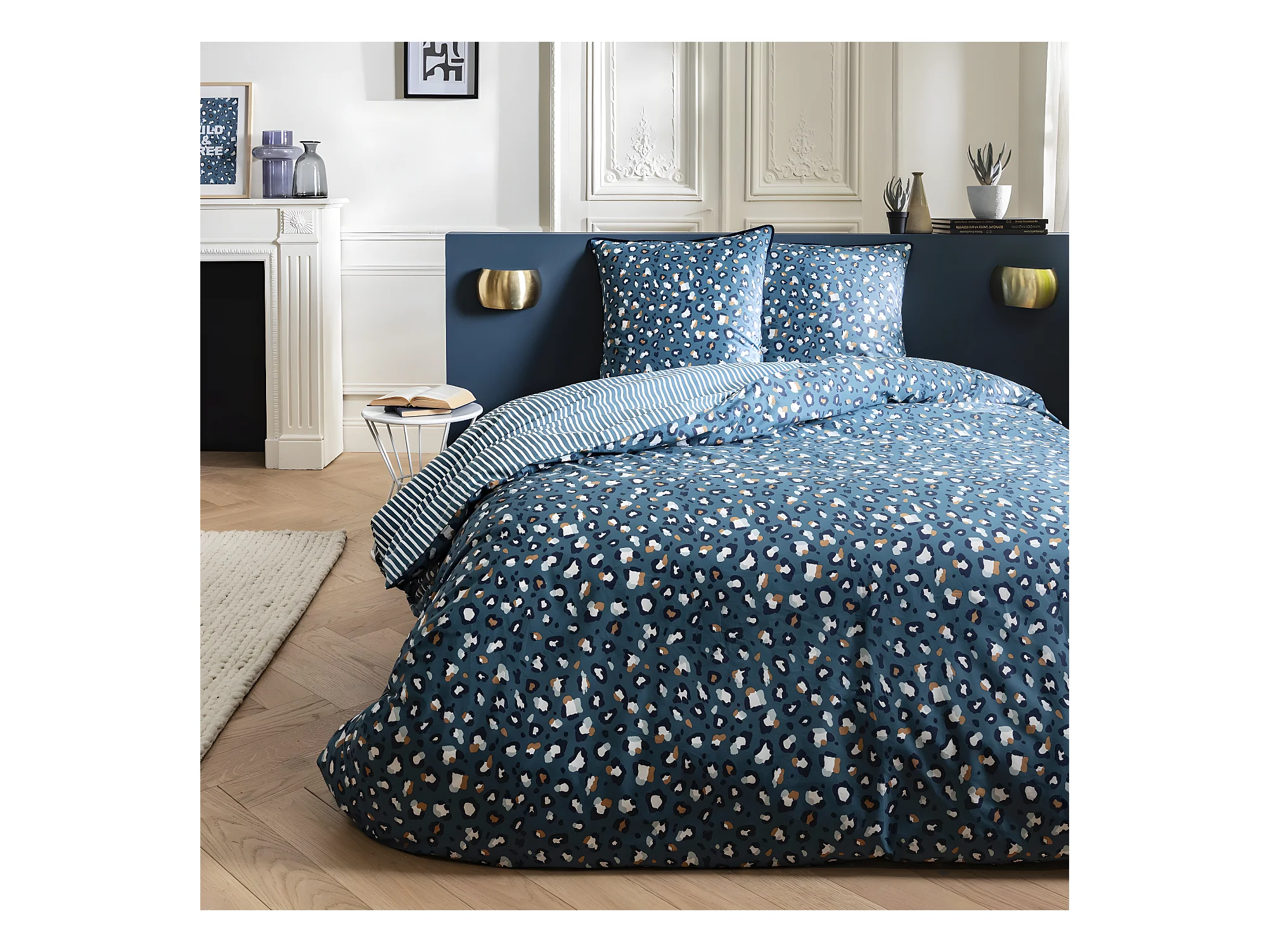 Parure de lit 2 personnes imprimé léopard réversible rayé 240x220cm