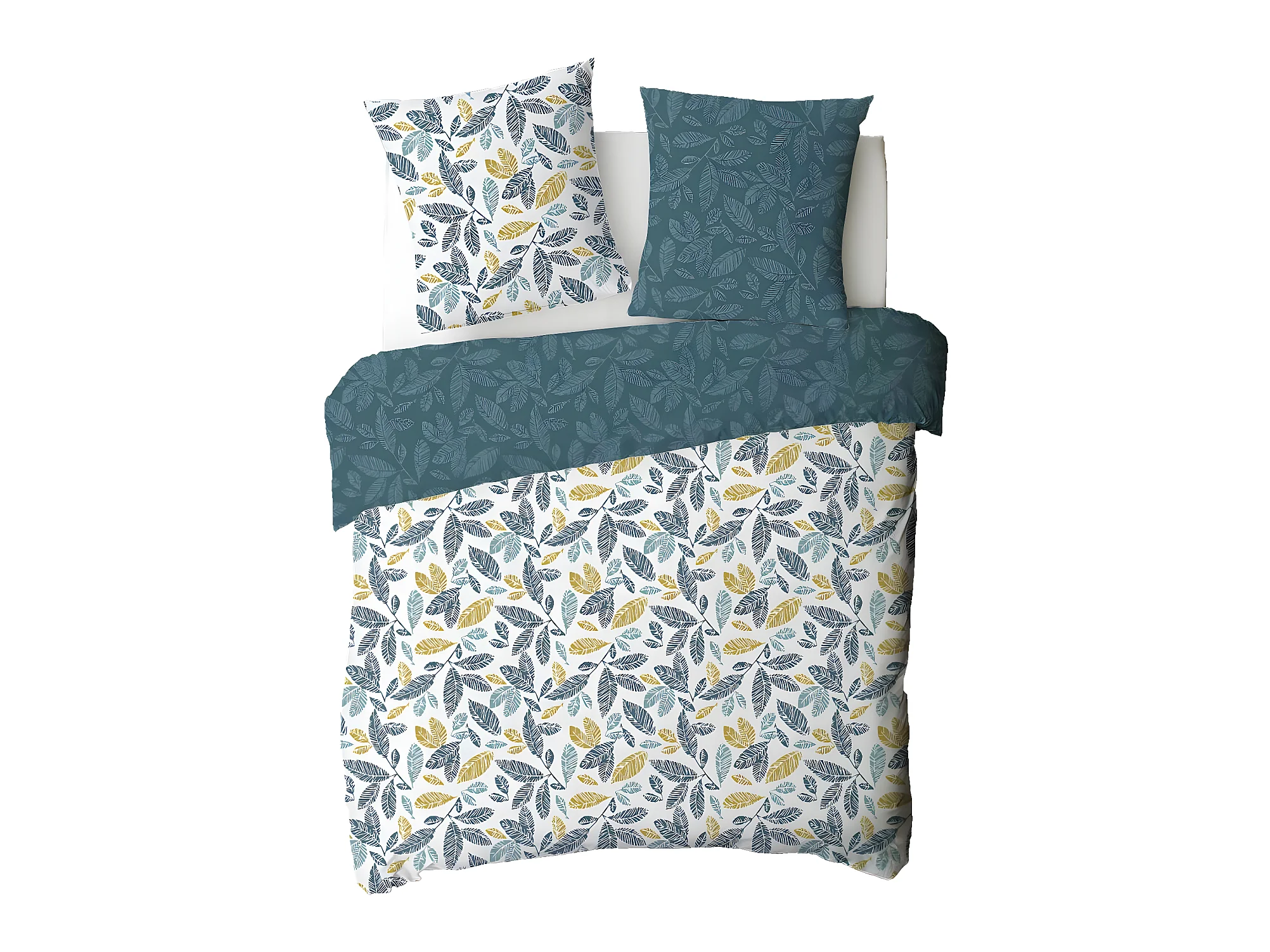 Parure de lit 2 personnes en coton 57 fils imprimé bleu 240x220cm