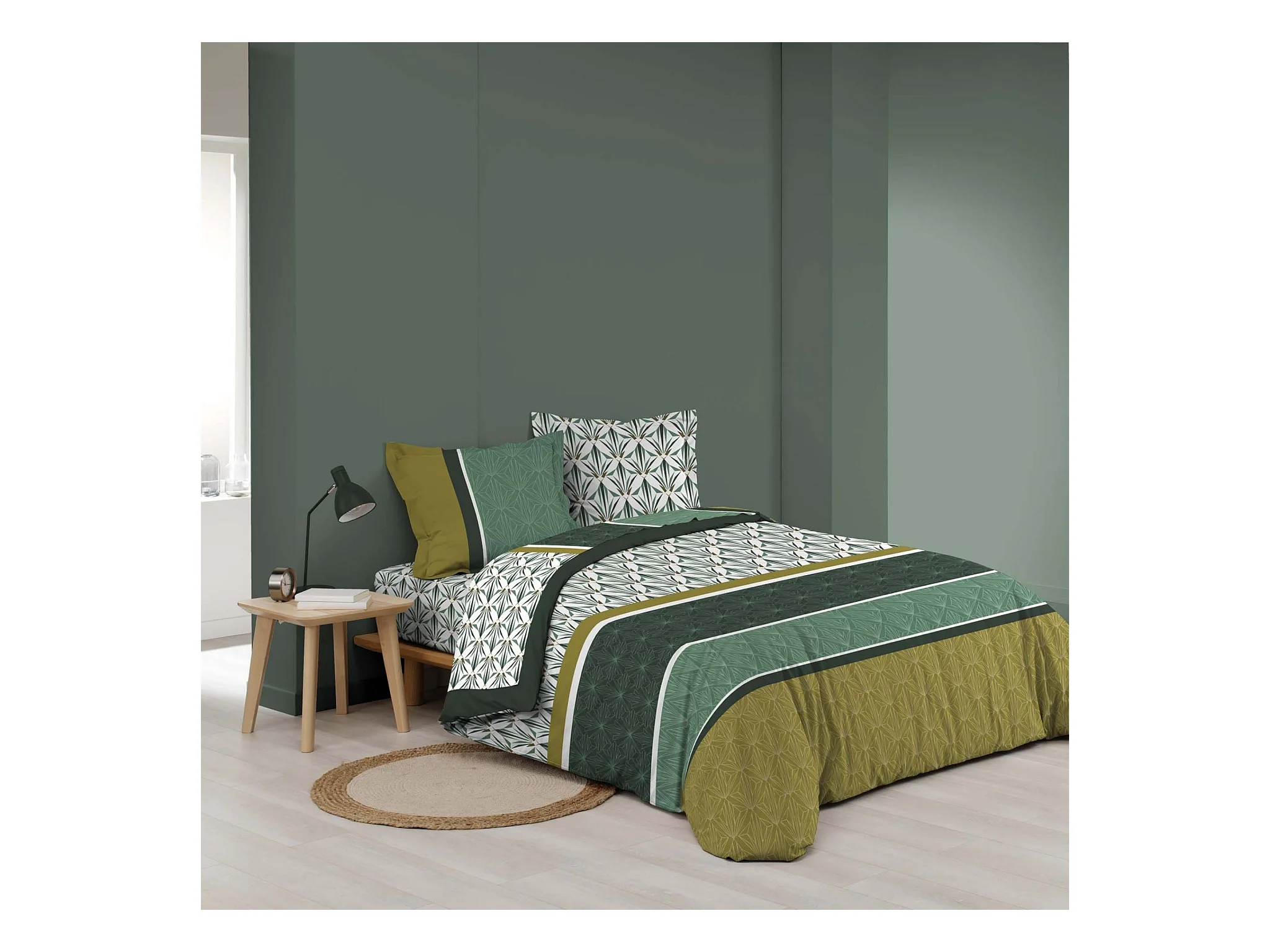 Parure de lit 2 personnes en coton 57 fils imprimé vert 240x220cm