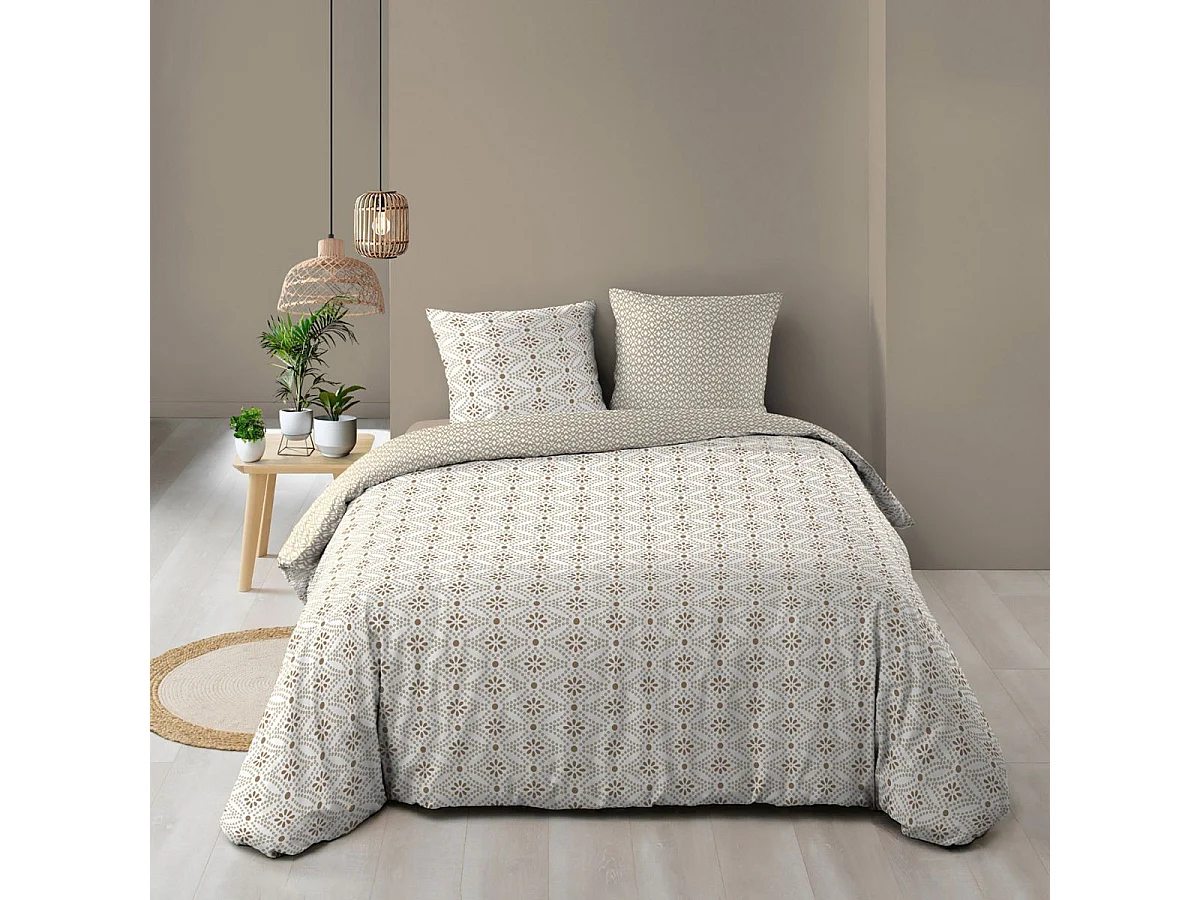 Parure de lit Mawira - 2 personnes - 260 x 240 cm - 100% coton - Beige Motif Ethnique - TODAY