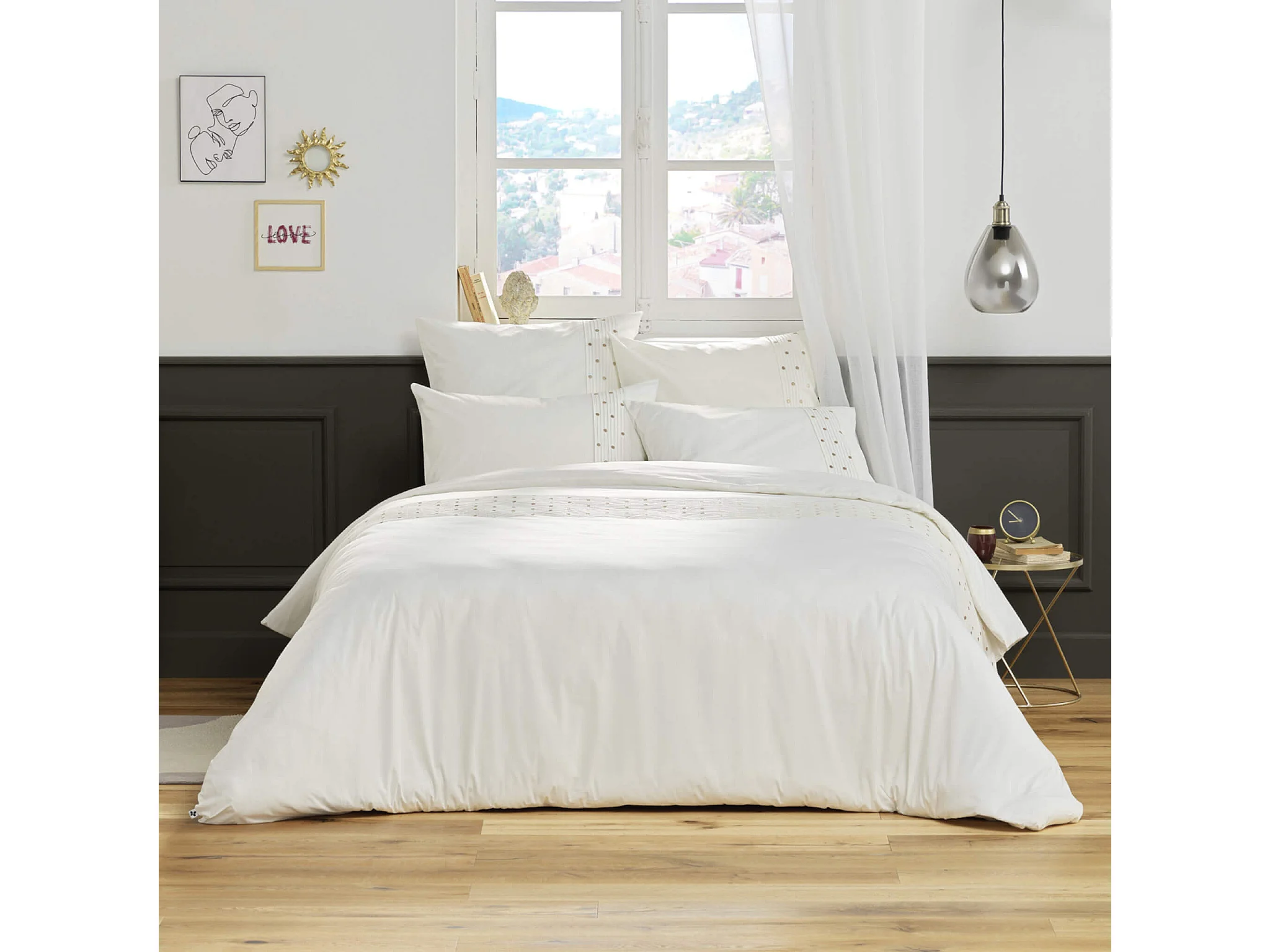 Parure de lit brodée plis religieuses blanc 260x240 cm