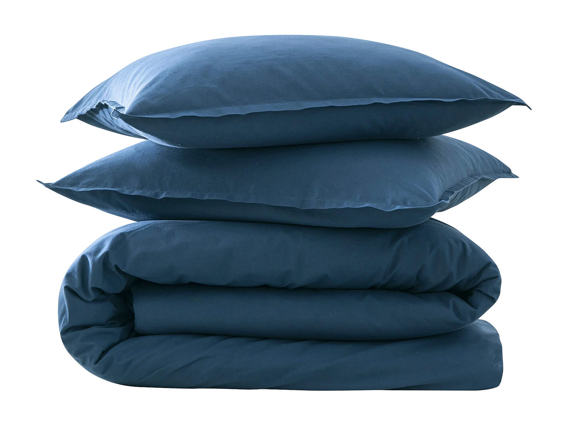 Parure de lit coton lavé - SOMEO Bleu marine 200x200 - CELESTE