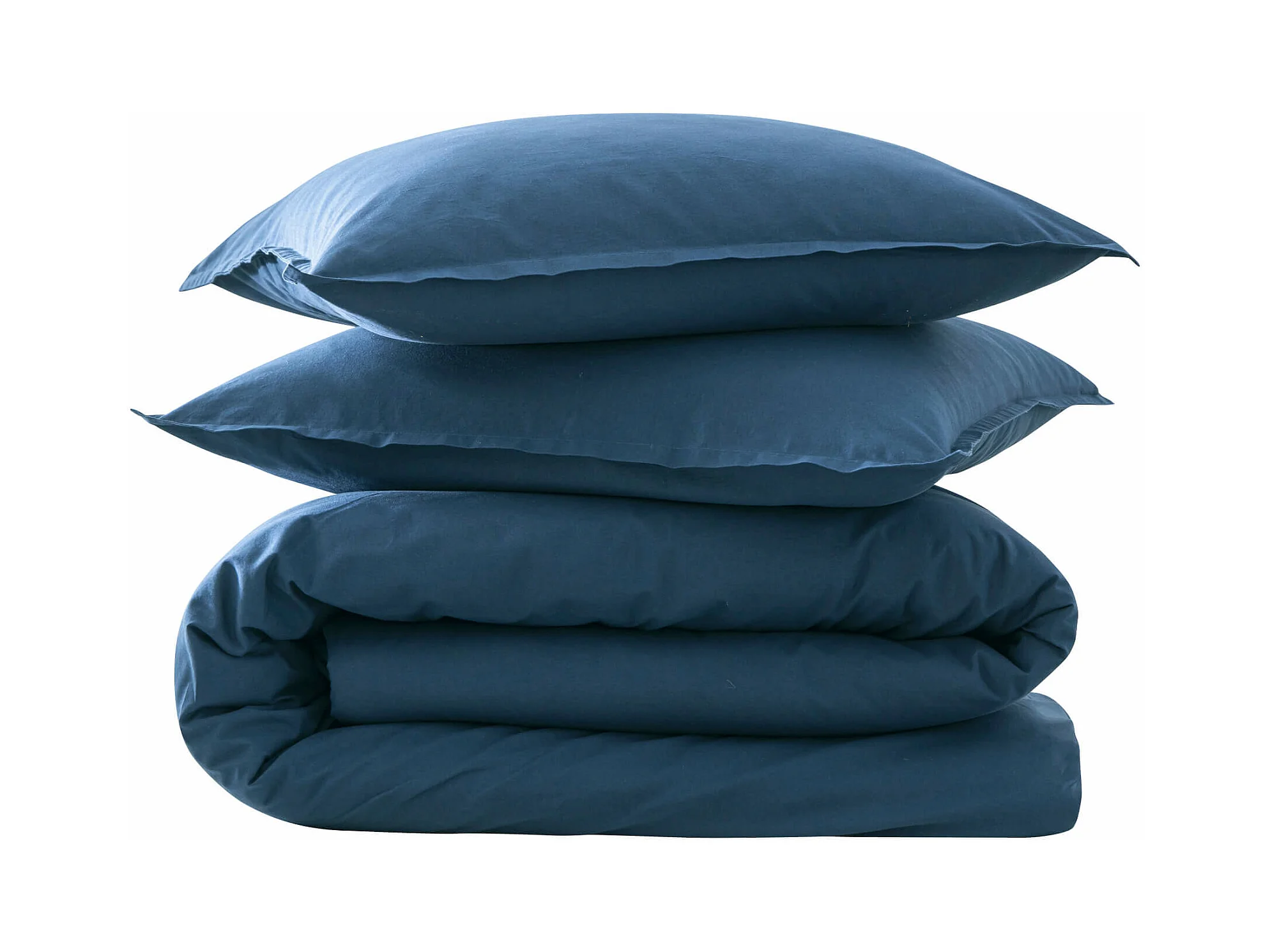 Parure de lit coton lavé - SOMEO Bleu marine 240x220 - CELESTE