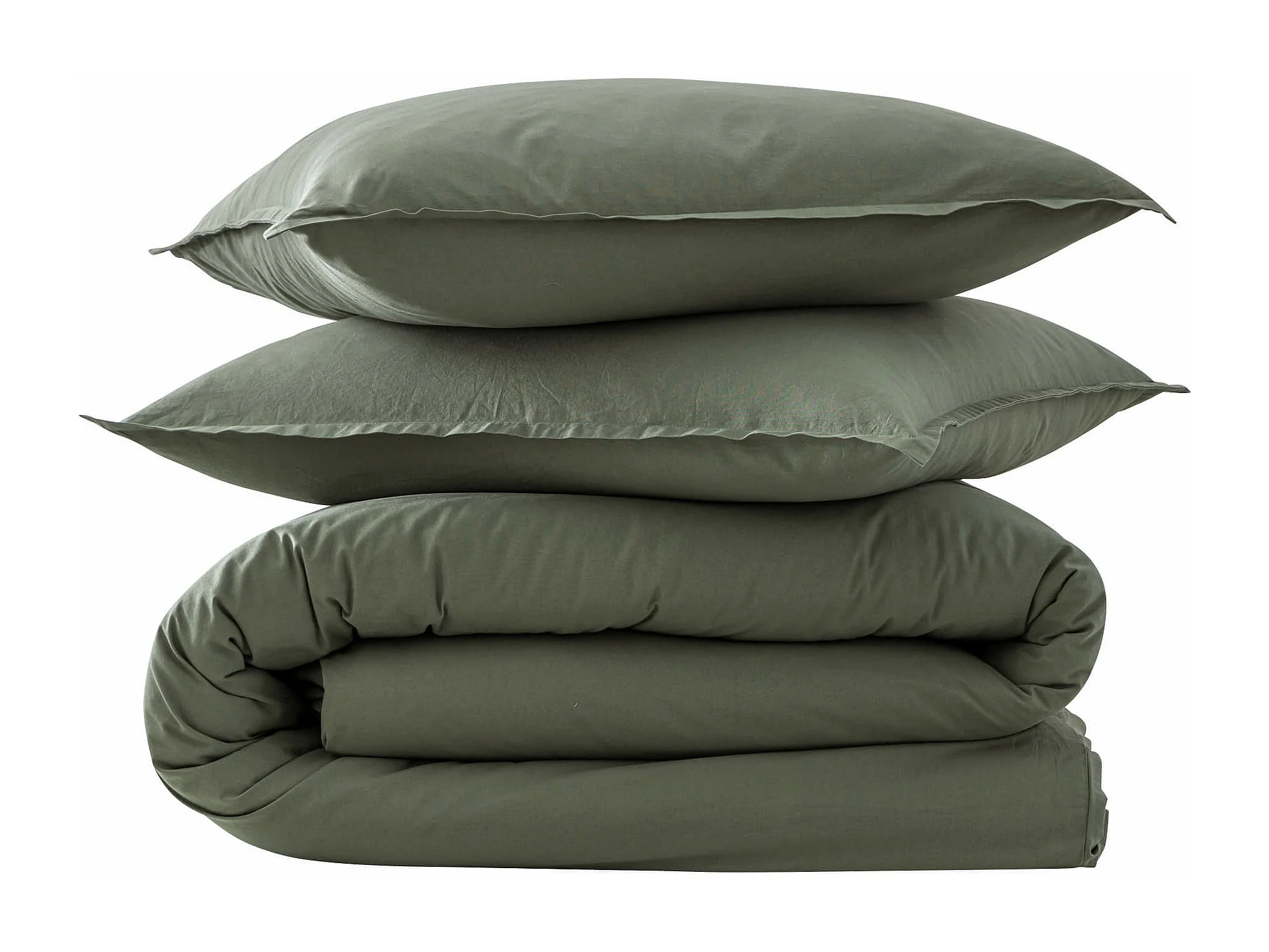 Parure de lit coton lavé - SOMEO Kaki 200x200 - CELESTE
