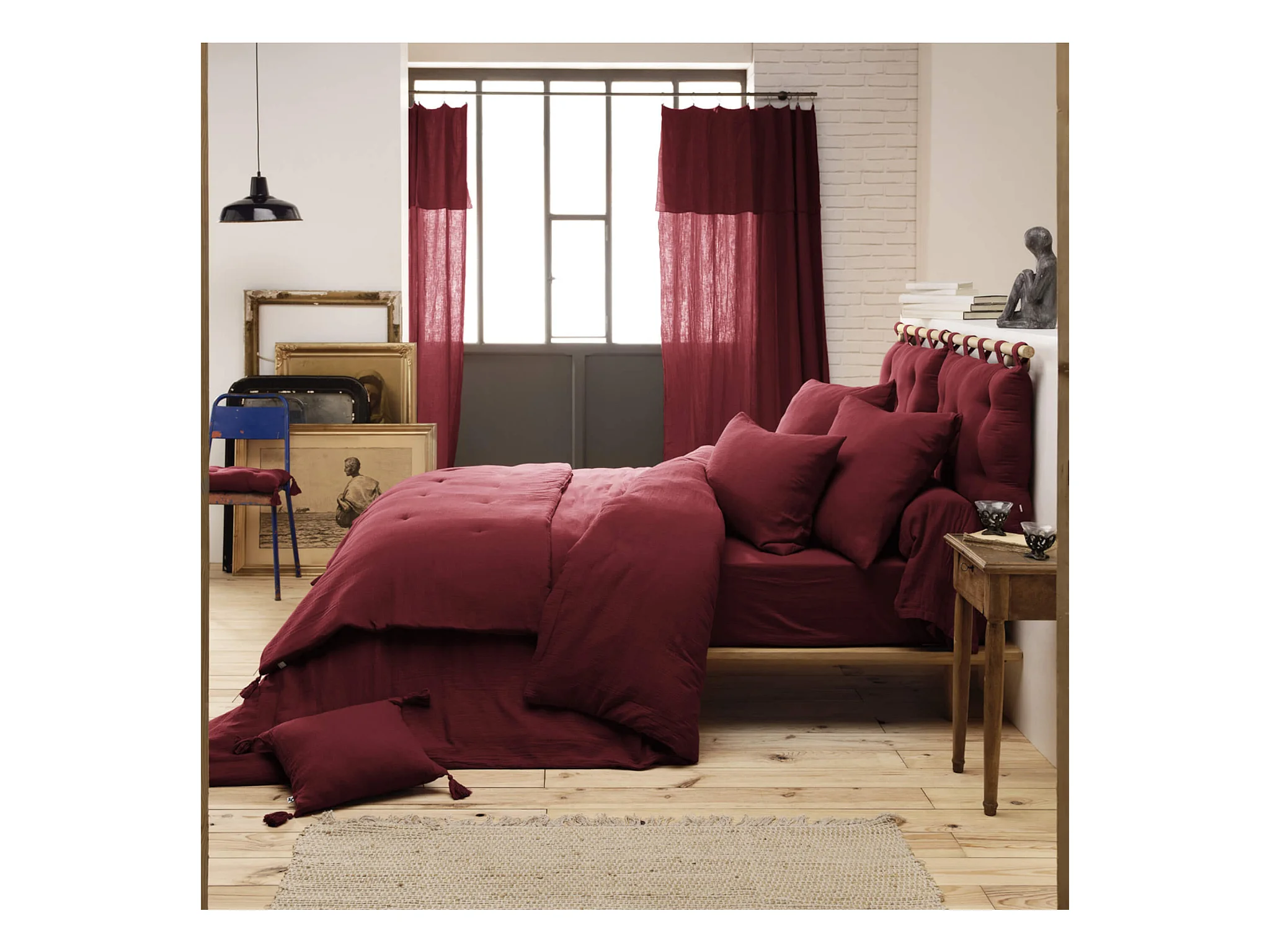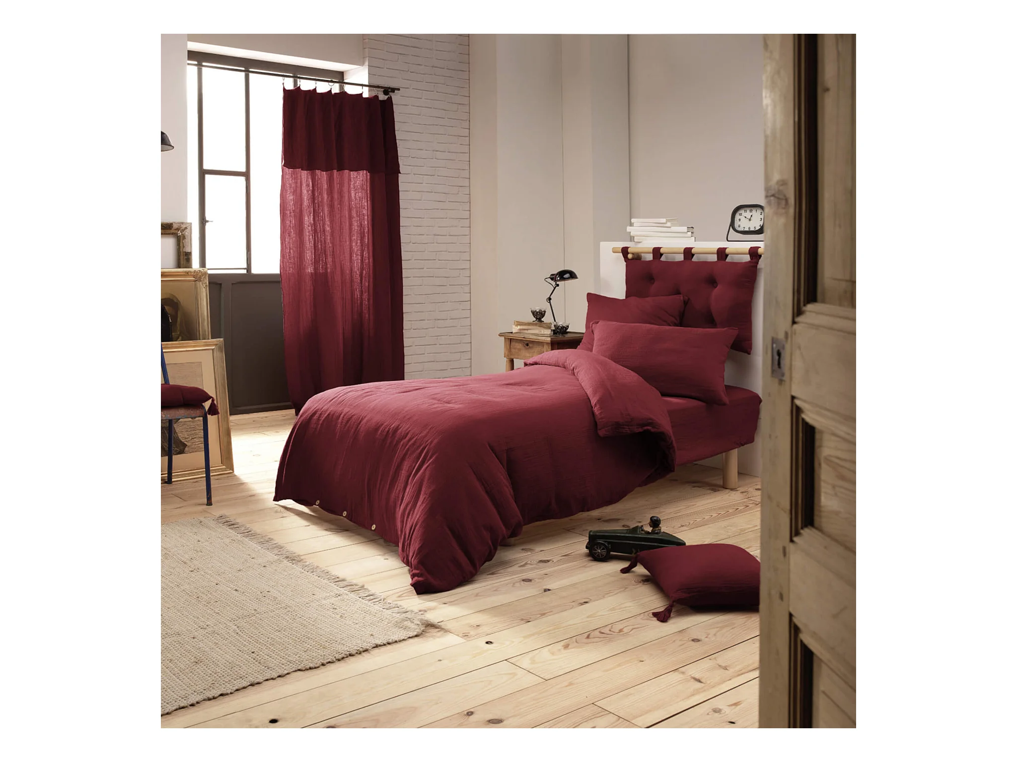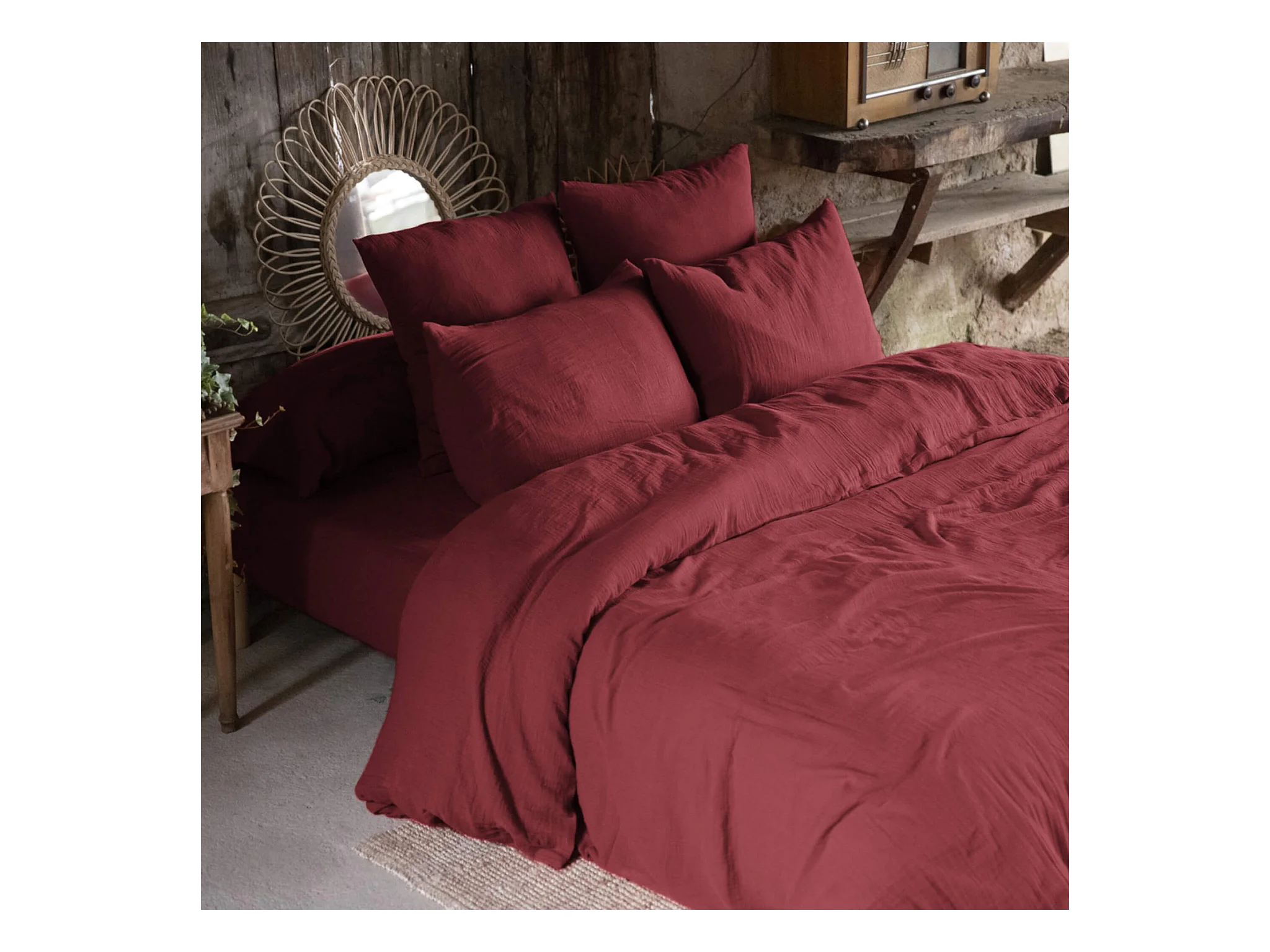 Parure de lit 140x200 double gaze de coton bordeaux Terre de Nuit