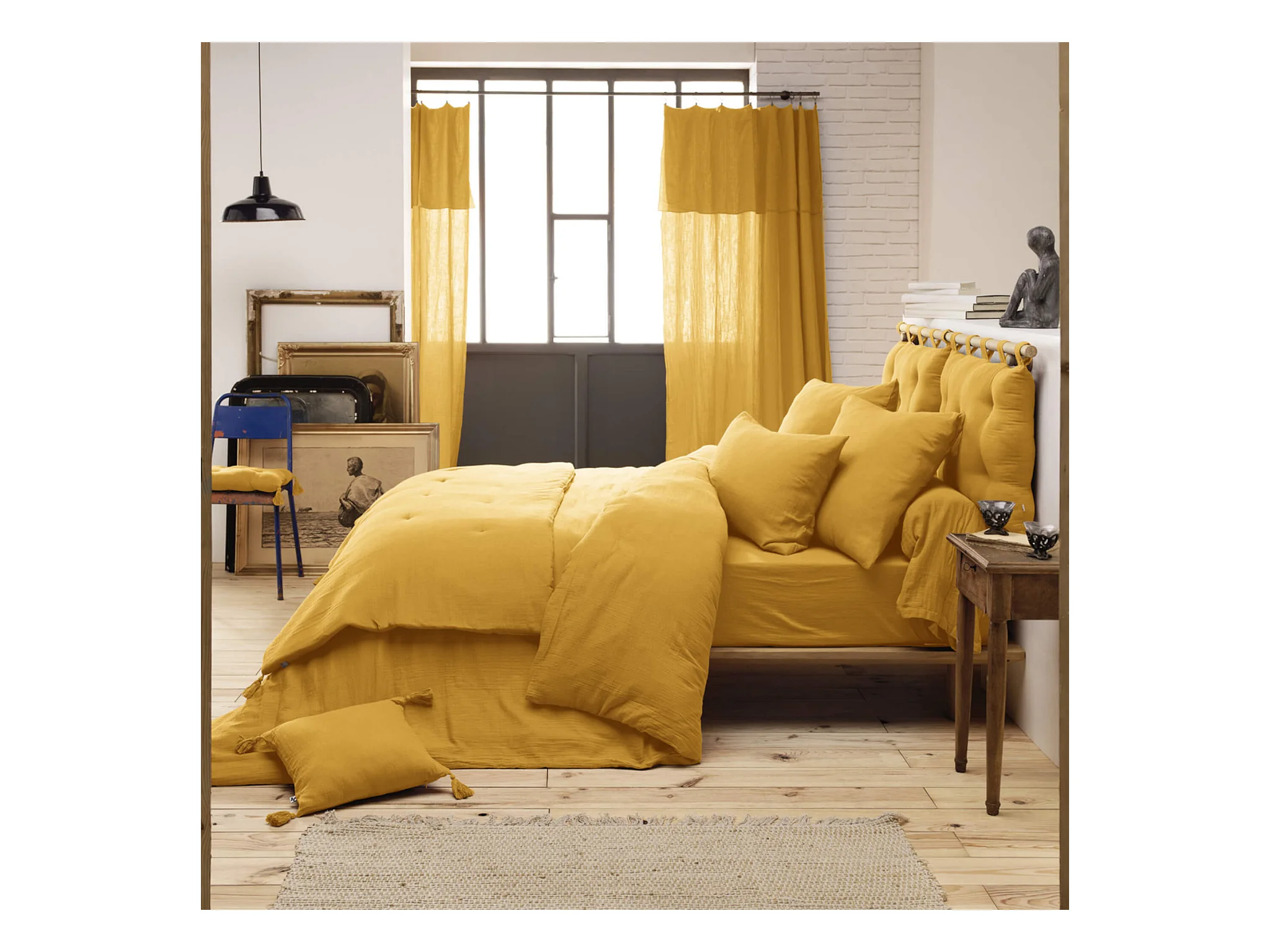 Parure de lit 260x240 double gaze de coton jaune safran Terre de Nuit