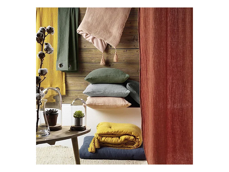 Parure de lit 240 x 260 cm en double gaze de coton vert - PEPA 4