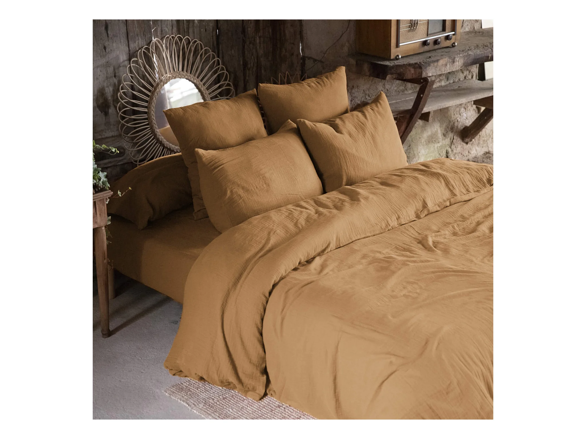 Parure de lit 240 x 260 cm en double gaze de coton camel - PEPA 2