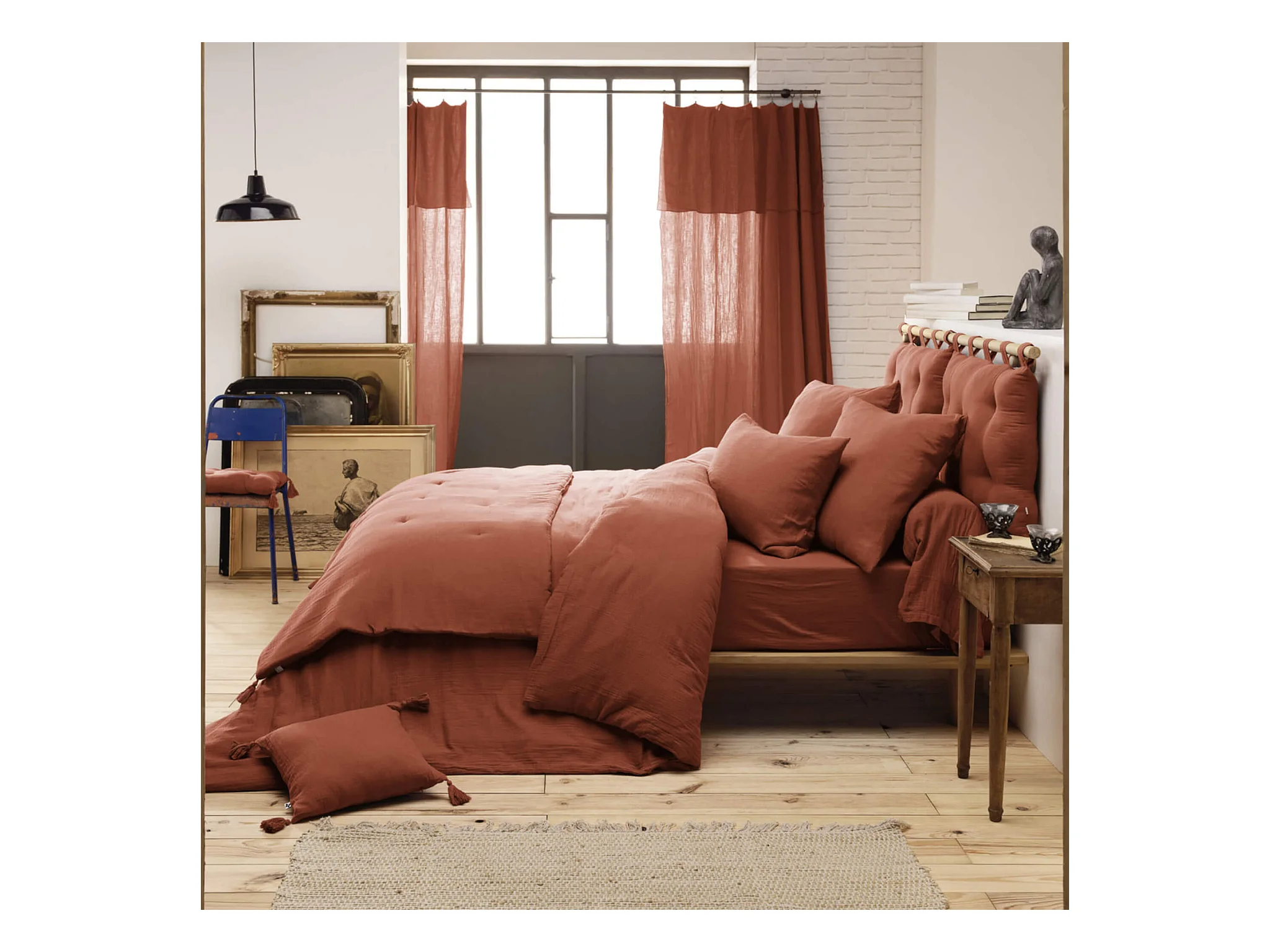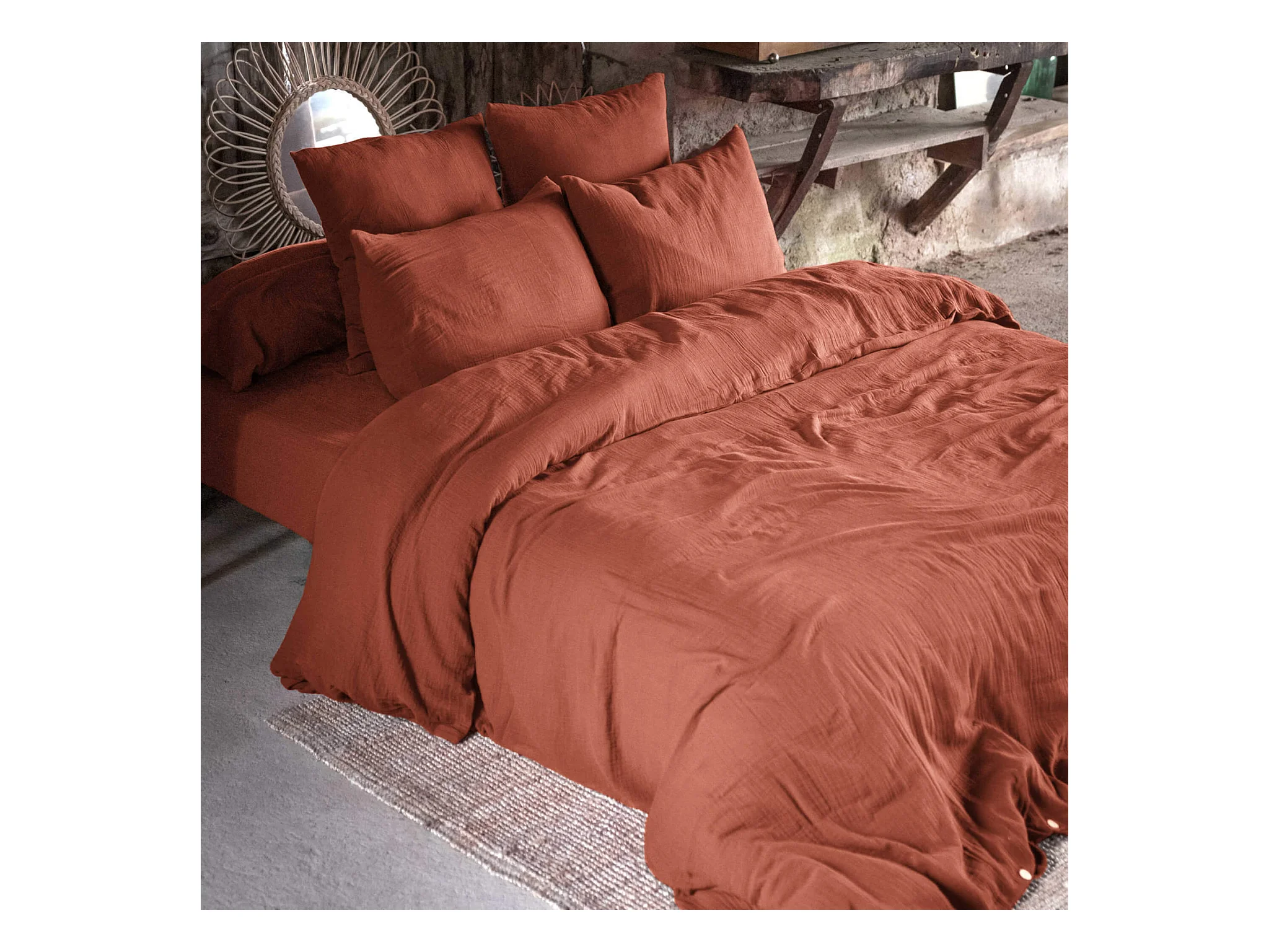 Parure de lit double gaze de coton orange terracotta 260x240 cm