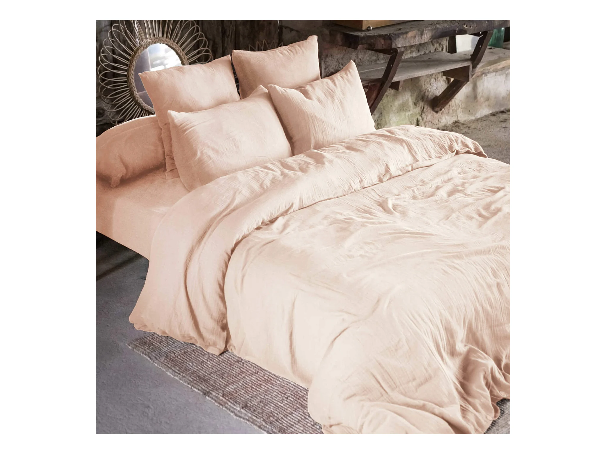 Parure de lit 2 personnes gaze de coton unie 260x240 cm, Coloris Rose des Sables, Today