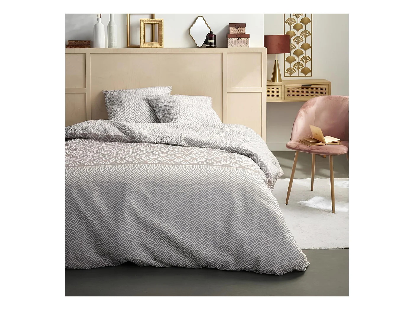 Housse de couette + taie(s) oreiller "Lufian gris" 100% coton imprimé.