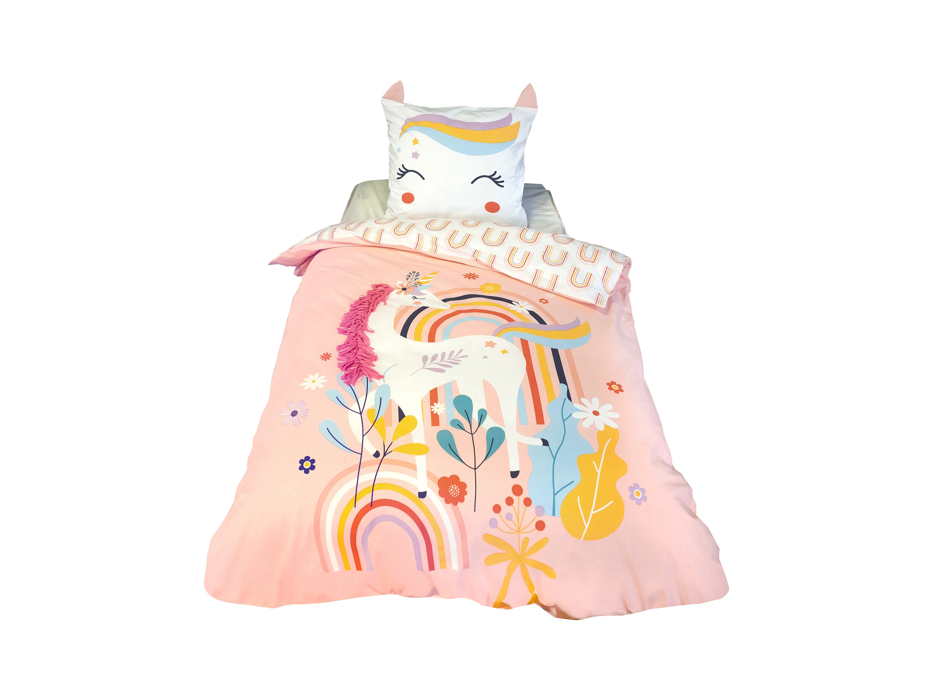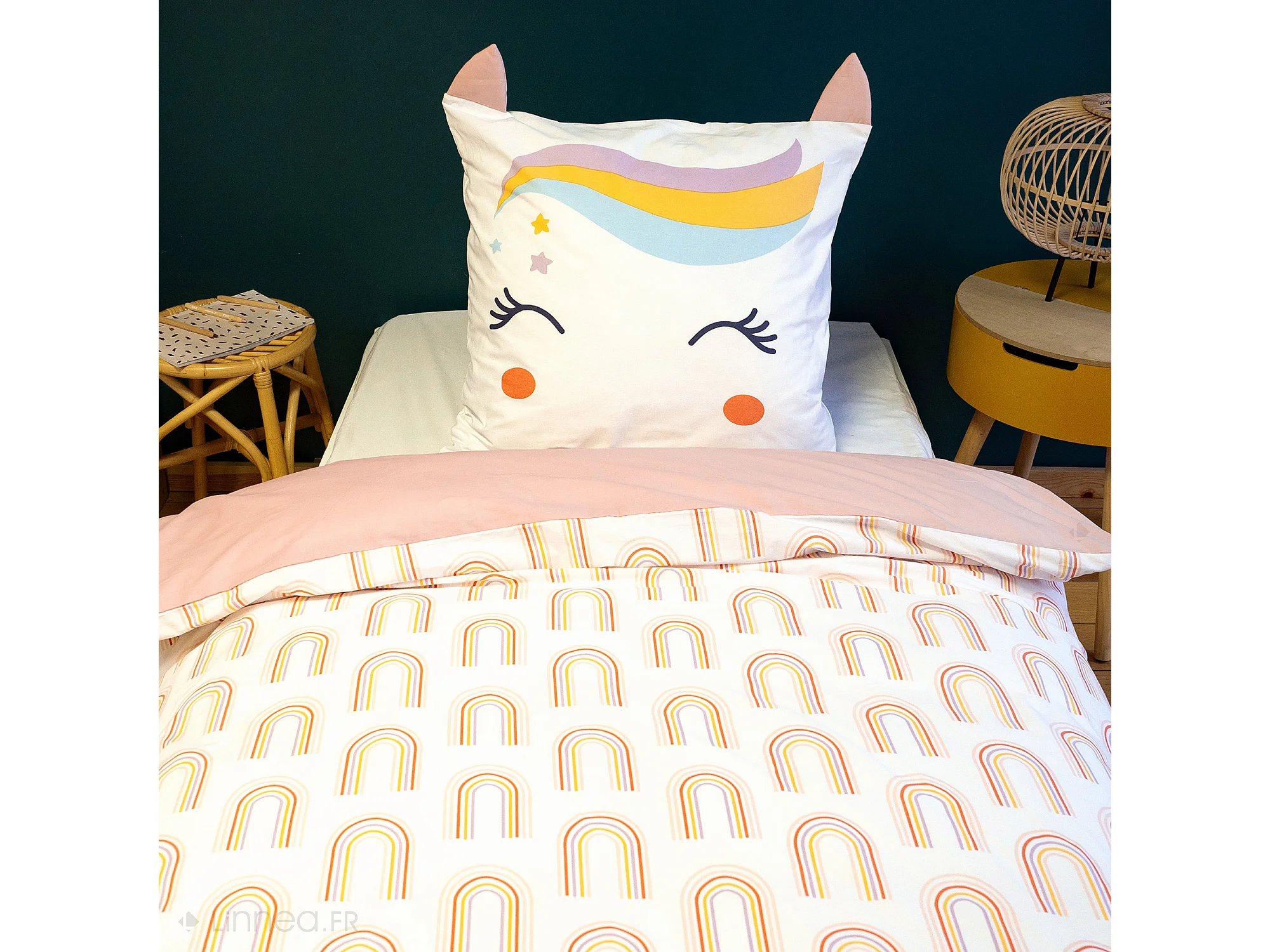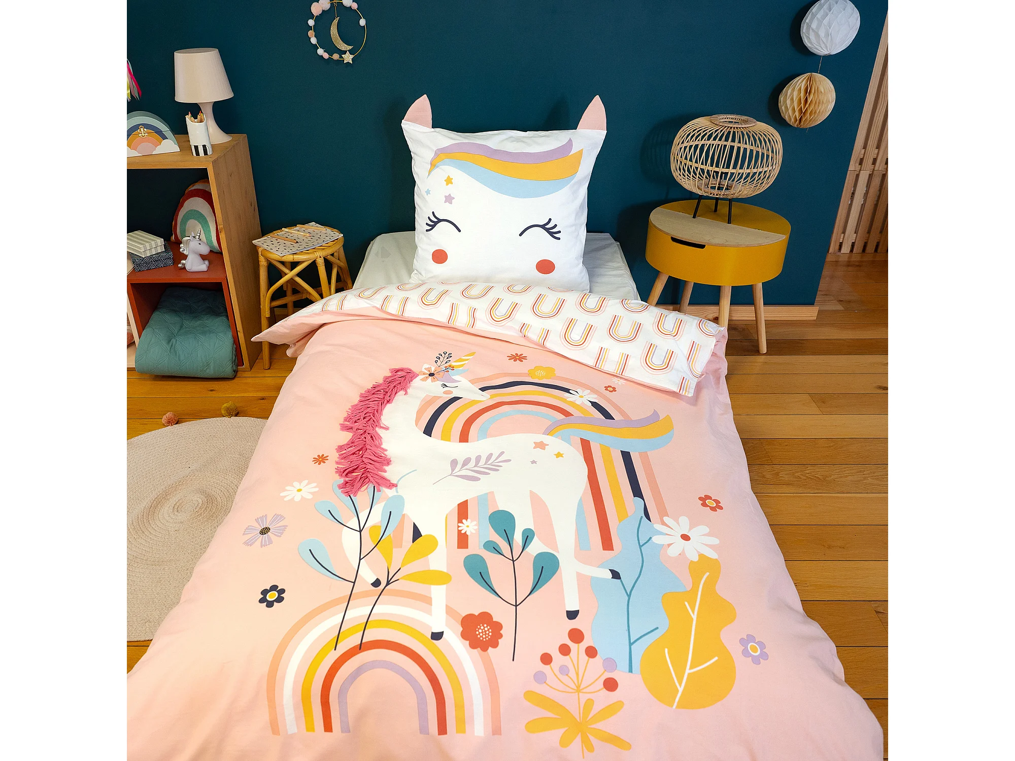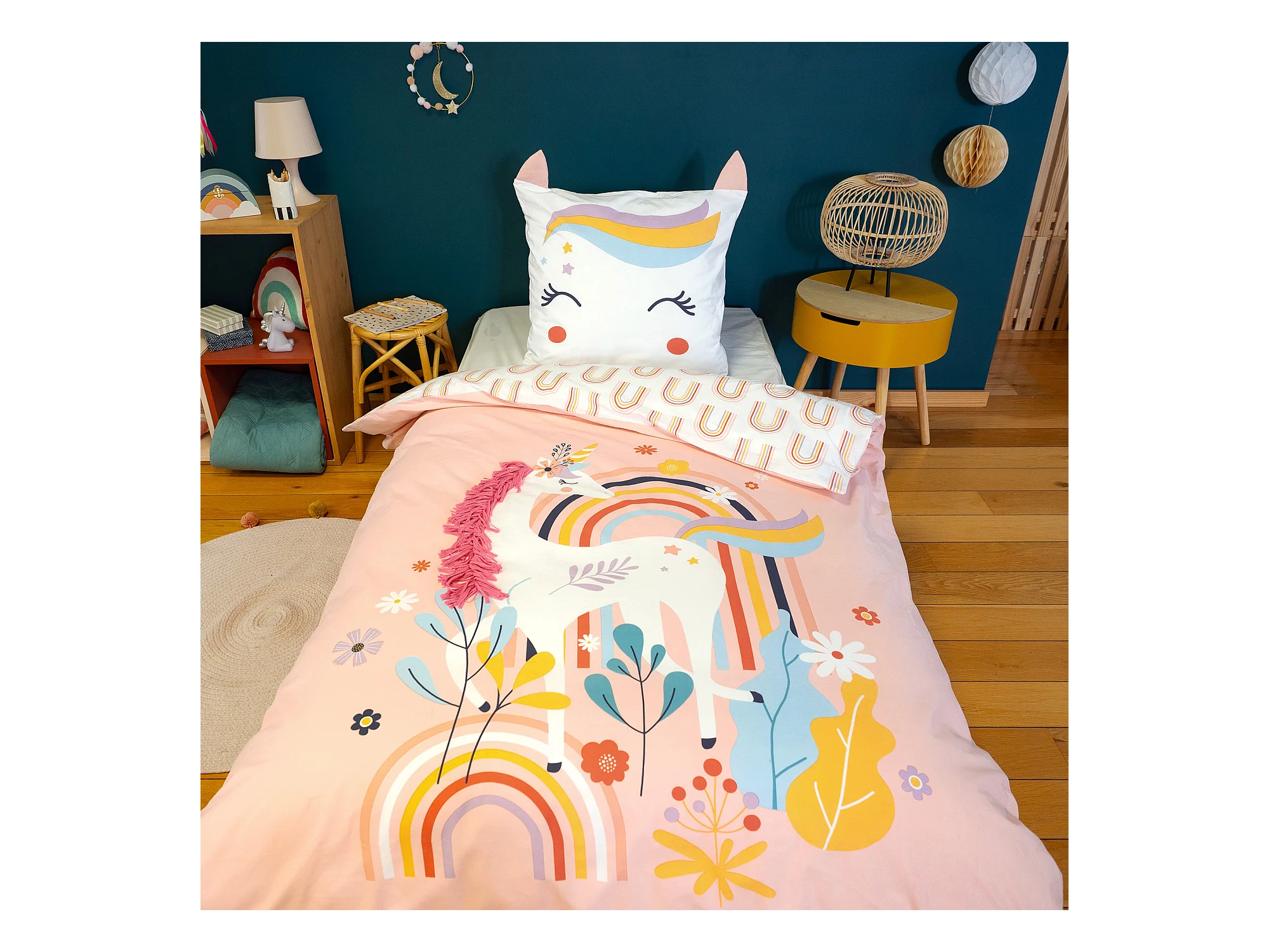 Parure de lit enfant 140x200 cm collection GALAK coton rose 2 pièces