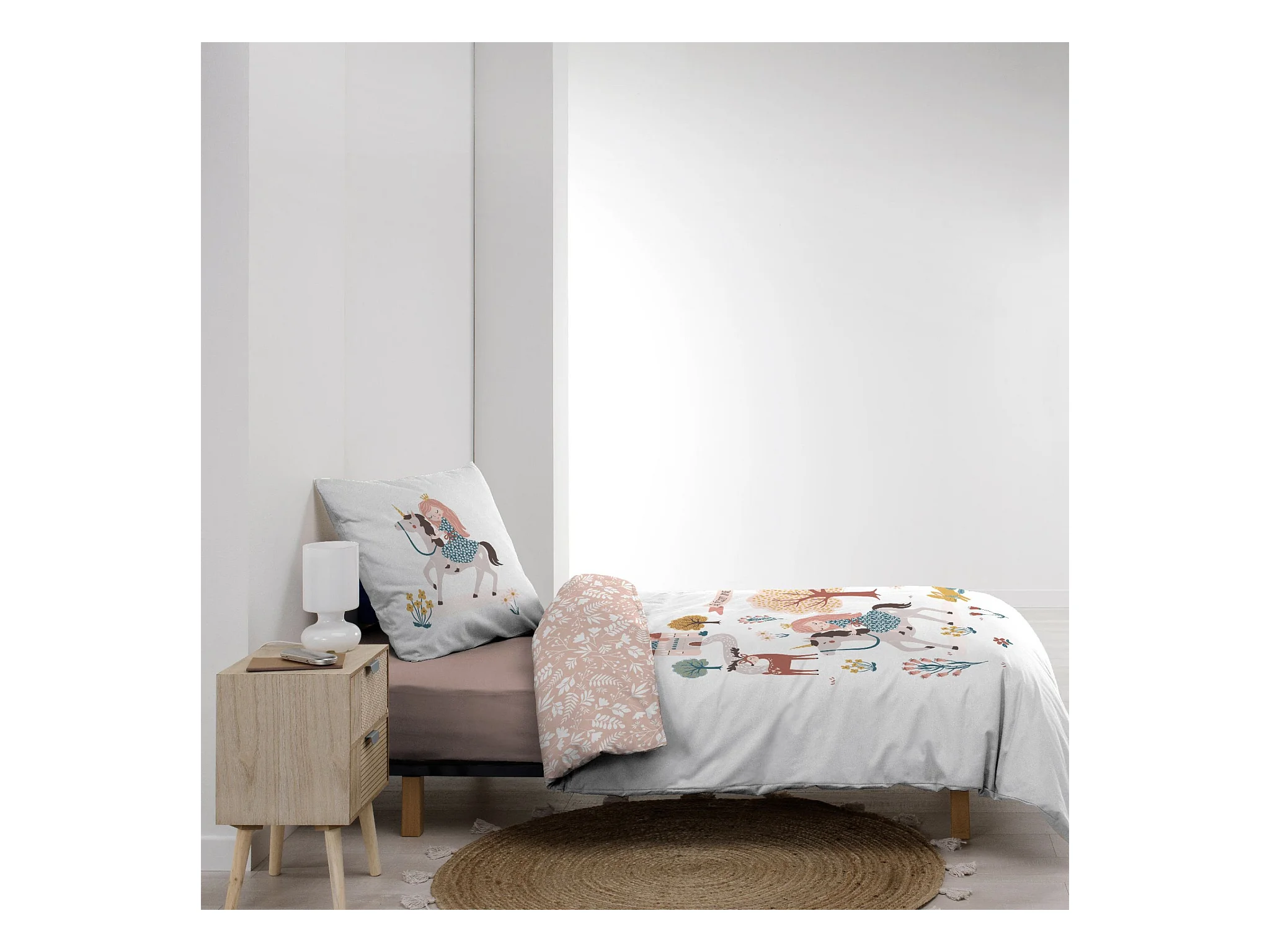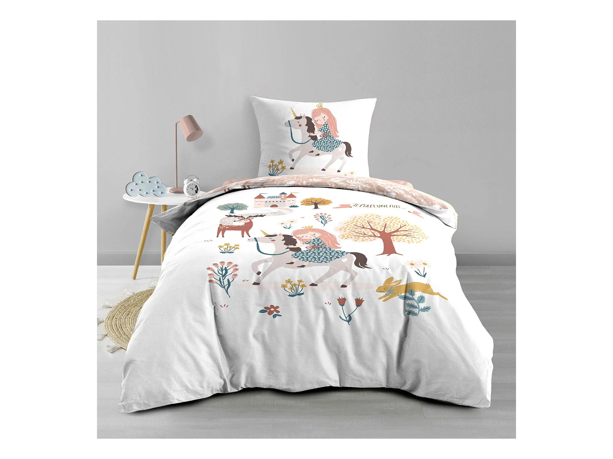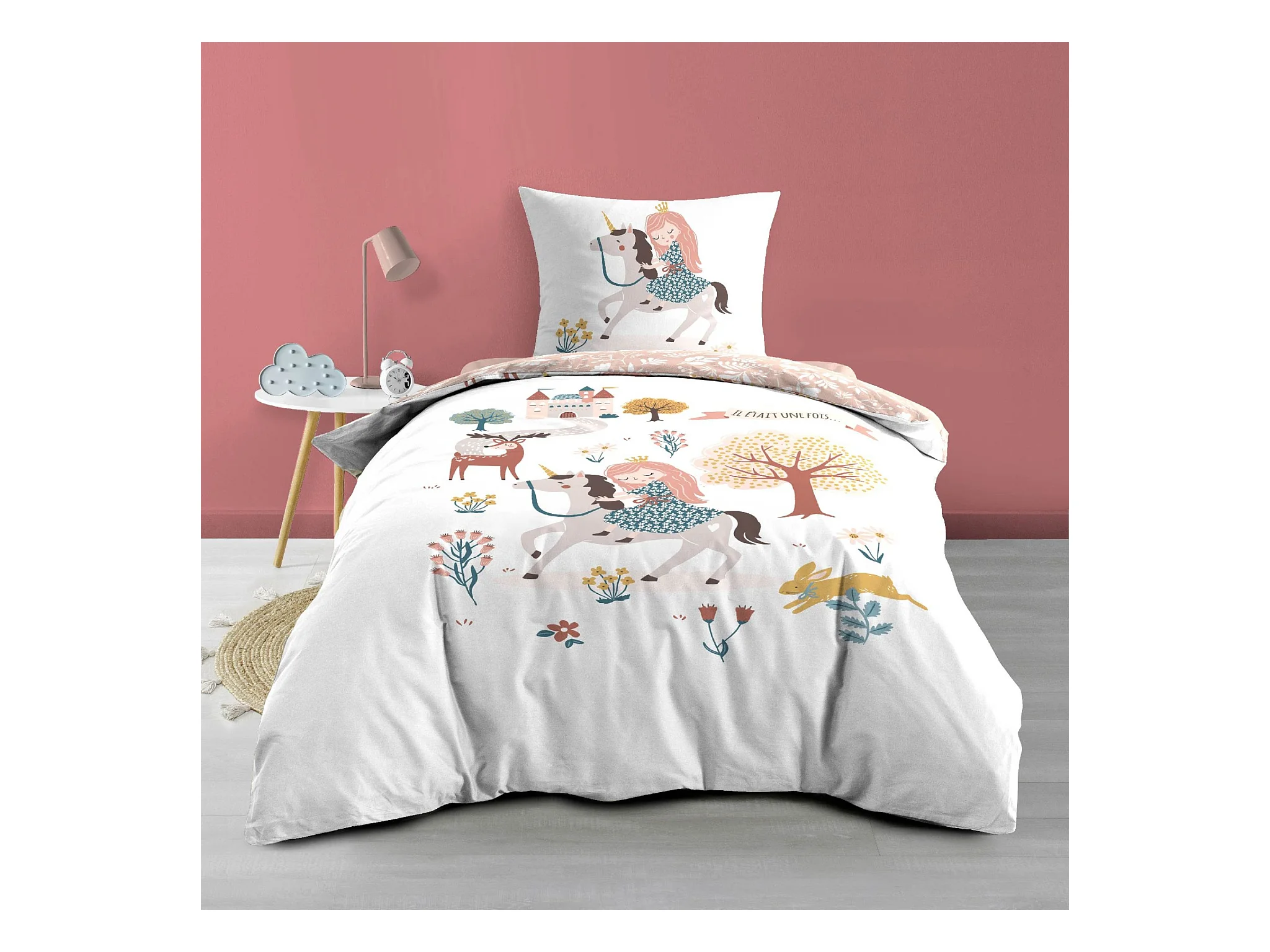 Parure de lit enfant réversible 140x200 coton Douceur d'Intérieur Biche