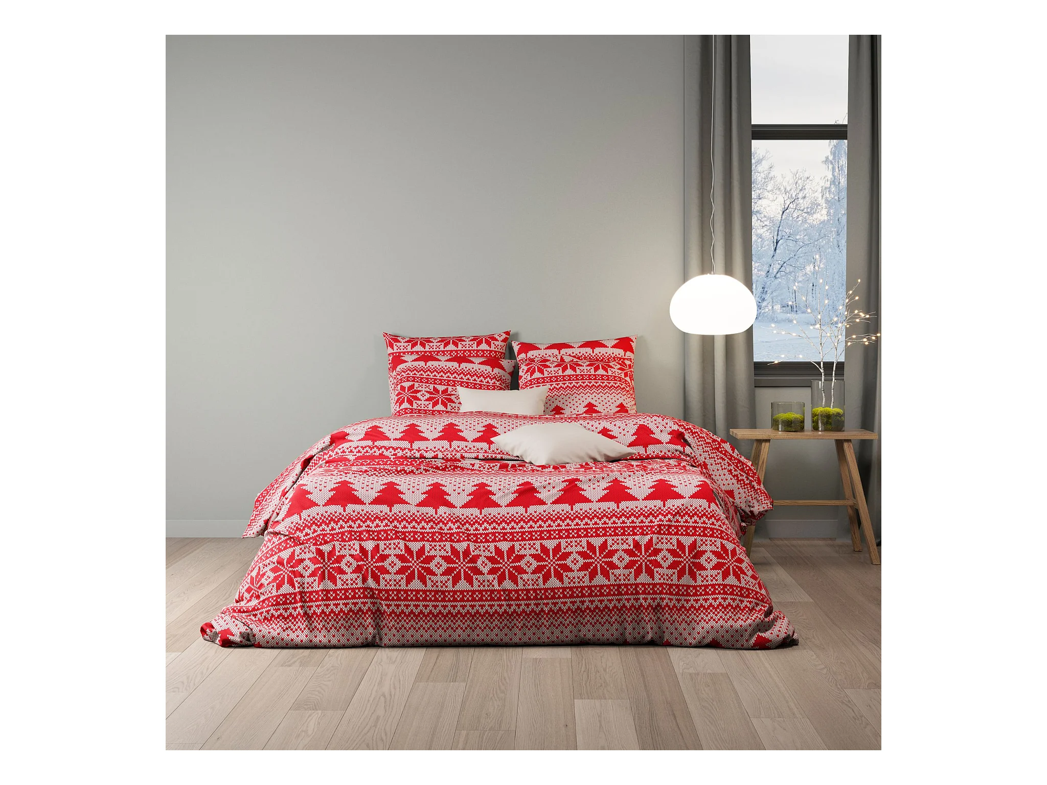 Parure de lit 140x200 flanelle à carreaux rouge Terre de Nuit Noël