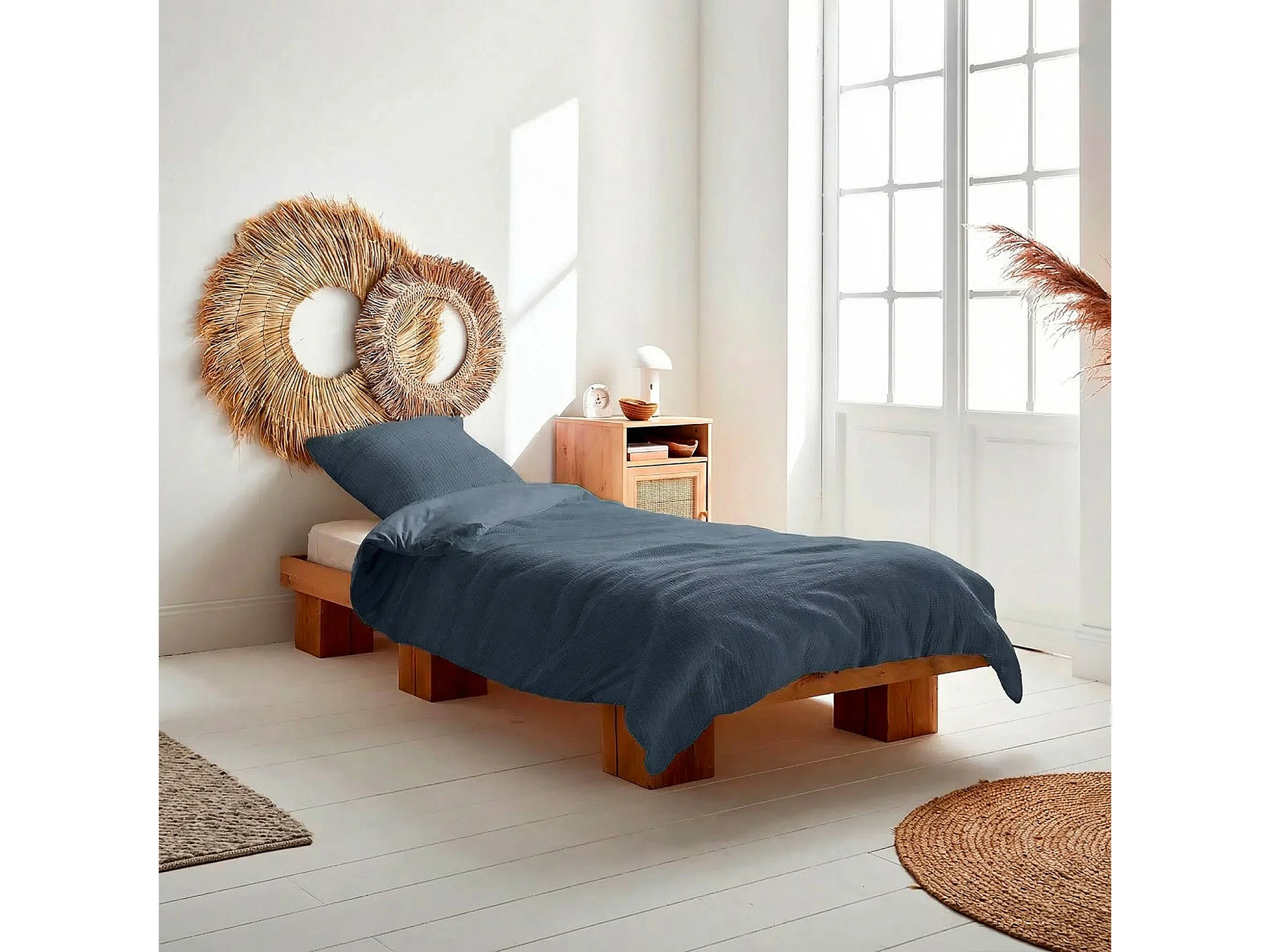 Parure de lit gaze de coton bleu foncé 140x200cm - Alix